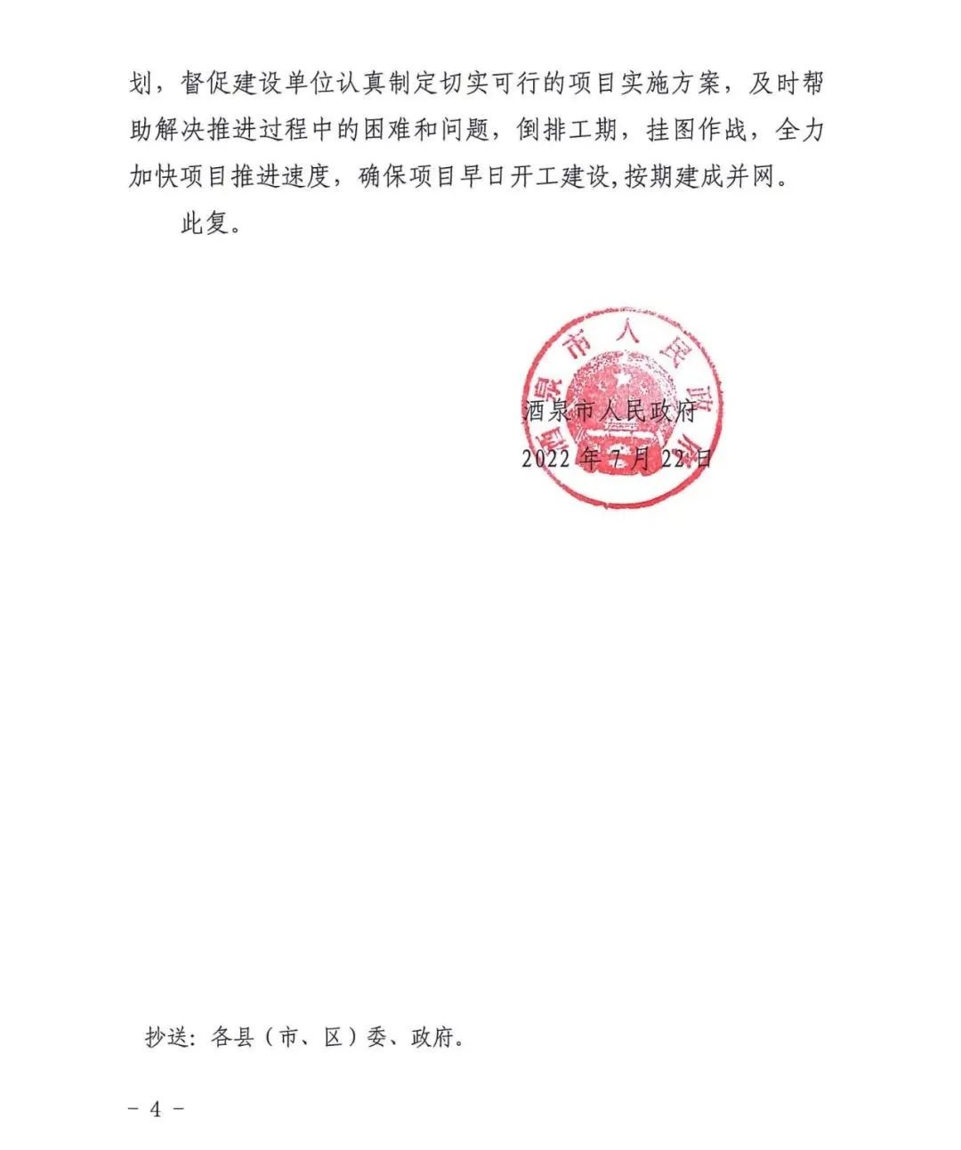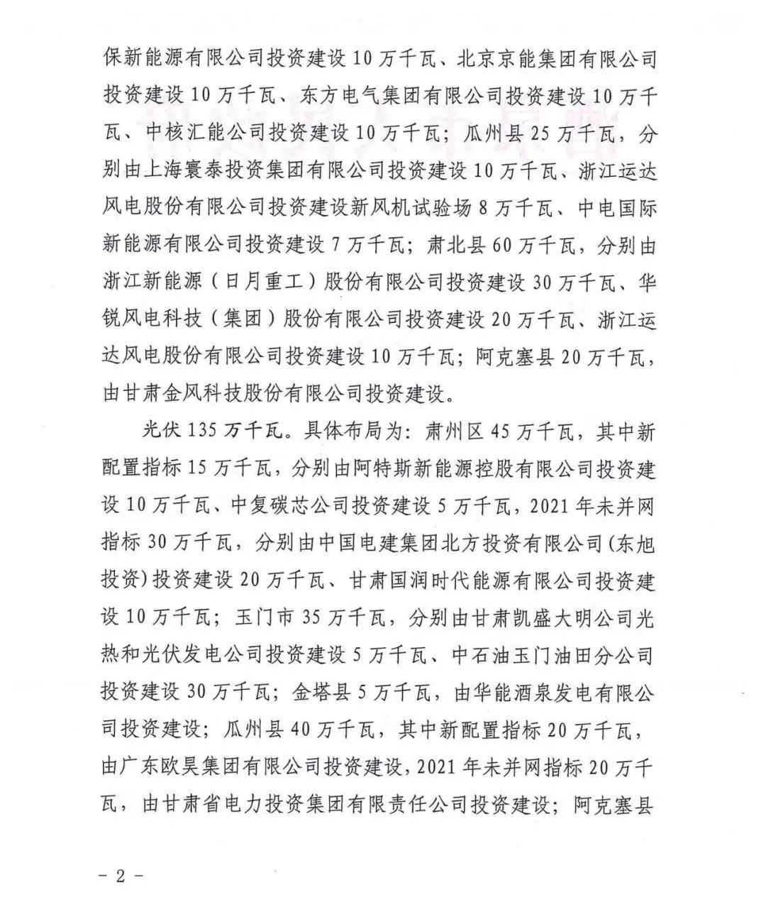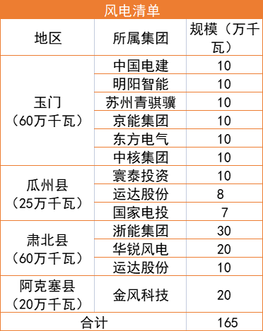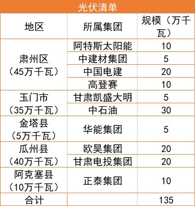 7月22日,甘肅酒泉市人民政府下發(fā)“十四五”第二批風(fēng)光項目建設(shè)指標(biāo)的批復(fù),按照風(fēng)電1.65GW、光伏1.35GW以及敦煌1GW專項指標(biāo)劃分,規(guī)??傆嫗?GW,光伏、風(fēng)電總規(guī)模各為2GW。