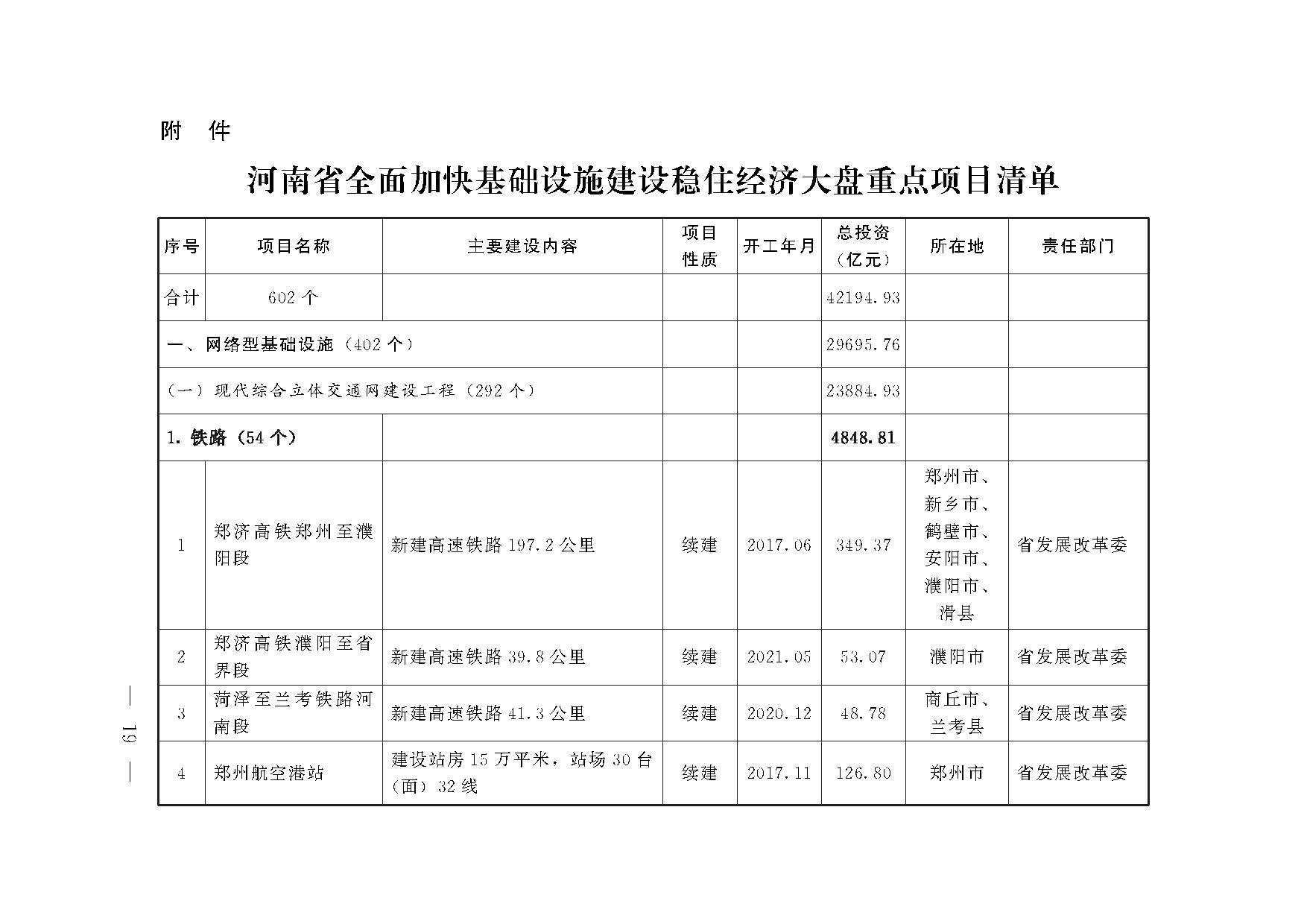河南:2025年可再生能源發(fā)電裝機達到5000萬千瓦以上8月9日,河南省人民政府發(fā)布河南省全面加快基礎設施建設穩(wěn)住經濟大盤工作方案的通知。方案中提出優(yōu)化電力網源儲。實施陜西至河南直流輸電工程,到2025年力爭省外電量引進規(guī)模達到1000億千瓦時/年以上。實施魯山花園溝等一批抽水蓄能電站,新增裝機規(guī)模180萬千瓦。強化以鄭州都市圈為中心的省級500千伏主網架建設,推動市域220千伏支撐電網優(yōu)化升級,建設國內一流的現代城市配電網和中部領先的農村電網。 提質發(fā)展新能源。持續(xù)推進4個百萬千瓦級高質量風電基地、4個千萬平方米地熱供暖規(guī)?;檬痉秴^(qū)建設,加快整縣屋頂分布式光伏開發(fā)試點和“光伏+”特色工程進度,到2025年可再生能源發(fā)電裝機達到5000萬千瓦以上。 原文如下: 河南省人民政府辦公廳 關于印發(fā)河南省全面加快基礎設施建設 穩(wěn)住經濟大盤工作方案的通知 豫政辦〔2022〕67號 各省轄市人民政府,濟源示范區(qū)、航空港區(qū)管委會,省人民政府各部門: 《河南省全面加快基礎設施建設穩(wěn)住經濟大盤工作方案》已經省政府同意,現印發(fā)給你們,請認真貫徹執(zhí)行。 河南省人民政府辦公廳 2022年7月28日 河南省全面加快基礎設施建設 穩(wěn)住經濟大盤工作方案 為深入貫徹習近平總書記關于“疫情要防住、經濟要穩(wěn)住、發(fā)展要安全”的重要指示要求,落實中央財經委員會第十一次會議部署和全國穩(wěn)住經濟大盤電視電話會議精神,全面加快我省基礎設施建設,支撐經濟運行在合理區(qū)間,努力完成全年目標任務,制定本工作方案。 一、總體要求 (一)基本思路。以習近平新時代中國特色社會主義思想為指導,深入貫徹中央財經委員會會議部署和全國穩(wěn)住經濟大盤電視電話會議精神,堅持以人民為中心,堅持問題導向、目標導向,統(tǒng)籌發(fā)展和安全,立足長遠、適度超前、科學規(guī)劃、多輪驅動、注重效益,圍繞網絡型、產業(yè)升級、城市、農業(yè)農村、國家安全等5大重點領域,著力優(yōu)化基礎設施布局、結構、功能和發(fā)展模式,推動全省基礎設施建設提速,加快構建現代化基礎設施體系,實現經濟效益、社會效益、生態(tài)效益、安全效益相統(tǒng)一,為實現“兩個確?!贝蛳聢詫嵒A,為穩(wěn)住經濟大盤作出積極貢獻。 (二)基本原則。 ——立足長遠,科學規(guī)劃。錨定“兩個確保”,實施“十大戰(zhàn)略”,以前瞻30年的眼光細化“十四五”規(guī)劃要求,強化基礎設施發(fā)展對國土空間開發(fā)保護、生產力布局和國家重大戰(zhàn)略實施的支撐。加快新型基礎設施建設,提升傳統(tǒng)基礎設施水平,實現互聯互通、共建共享、協(xié)調聯動。 ——適度超前,應納盡納。適度超前布局有利于引領產業(yè)發(fā)展和維護國家安全的基礎設施,搶抓國家宏觀政策靠前發(fā)力窗口期,將國家和省“十四五”規(guī)劃重大工程明確到具體項目,在深入研究論證、做深前期工作的基礎上,積極主動對接,爭取更多基礎設施項目納入國家規(guī)劃。 ——加快建設,靠前發(fā)力。扭住擴大內需戰(zhàn)略基點,發(fā)揮基礎設施投資拉動關鍵作用,推動基礎設施建設全面提速,對標重點領域,系統(tǒng)梳理重大基礎設施項目清單,逐項目建立臺賬、倒排工期、壓茬推進,推動重大項目早開工、早建成、早見效,盡快形成更多實物工作量。 ——落實條件,依法合規(guī)。強化部門協(xié)同,堅持靠前服務、齊抓共管,緊盯基礎設施項目謀劃儲備、手續(xù)辦理、要素保障、建設環(huán)境,依法合規(guī)履行項目基本建設程序,守牢安全生產底線,切實防范化解重大風險。 ——多輪驅動,注重效益。充分發(fā)揮政府和市場、國有資本和社會資本作用,分層分類加強基礎設施建設。做好可行性研究和綜合成本收益核算工作,既要建成精品工程,又要搞好持續(xù)運營,提高基礎設施全生命周期綜合效益。 (三)主要目標。2022年9月底前開工建設84個重大基礎設施項目,總投資1373億元,為穩(wěn)住經濟大盤、實現高質量發(fā)展提供堅實支撐。到2025年基礎設施布局、結構、功能和發(fā)展模式更加優(yōu)化,集約高效、智能綠色、安全可靠水平顯著提升,全生命周期綜合效益持續(xù)提高,對全省經濟社會發(fā)展的支撐作用更加堅實。 二、加強網絡型基礎設施建設 (四)實施現代綜合立體交通網建設工程。依托“米+井+人”綜合運輸通道布局和“1+3+4+N”綜合交通樞紐體系,構建多通道、多方向、多路徑的綜合立體交通網。 1.加快鐵路拓展成網。積極爭取更多國家鐵路建設債券支持,開工建設平頂山經漯河至周口高鐵、新建鄭州南站、鄭開城際鐵路延長線、南陽經信陽至合肥高鐵、呼南高鐵焦作經洛陽至平頂山段、京港臺高鐵阜陽至黃岡段等重大項目,推進鐵路專用線“進企入園”,到2025年高鐵(含城際)運營里程突破3000公里。(責任單位:省發(fā)展改革委、中國鐵路鄭州局集團、省鐵建投集團,各省轄市政府,濟源示范區(qū)、航空港區(qū)管委會) 2.完善民用機場布局。加快實施鄭州新鄭國際機場三期擴建工程和商丘、周口、平頂山、潢川等支線機場項目,積極推進布局規(guī)劃內通用機場建設,擴大民航服務覆蓋范圍,到2025年運輸機場數量超過6個,通用機場數量