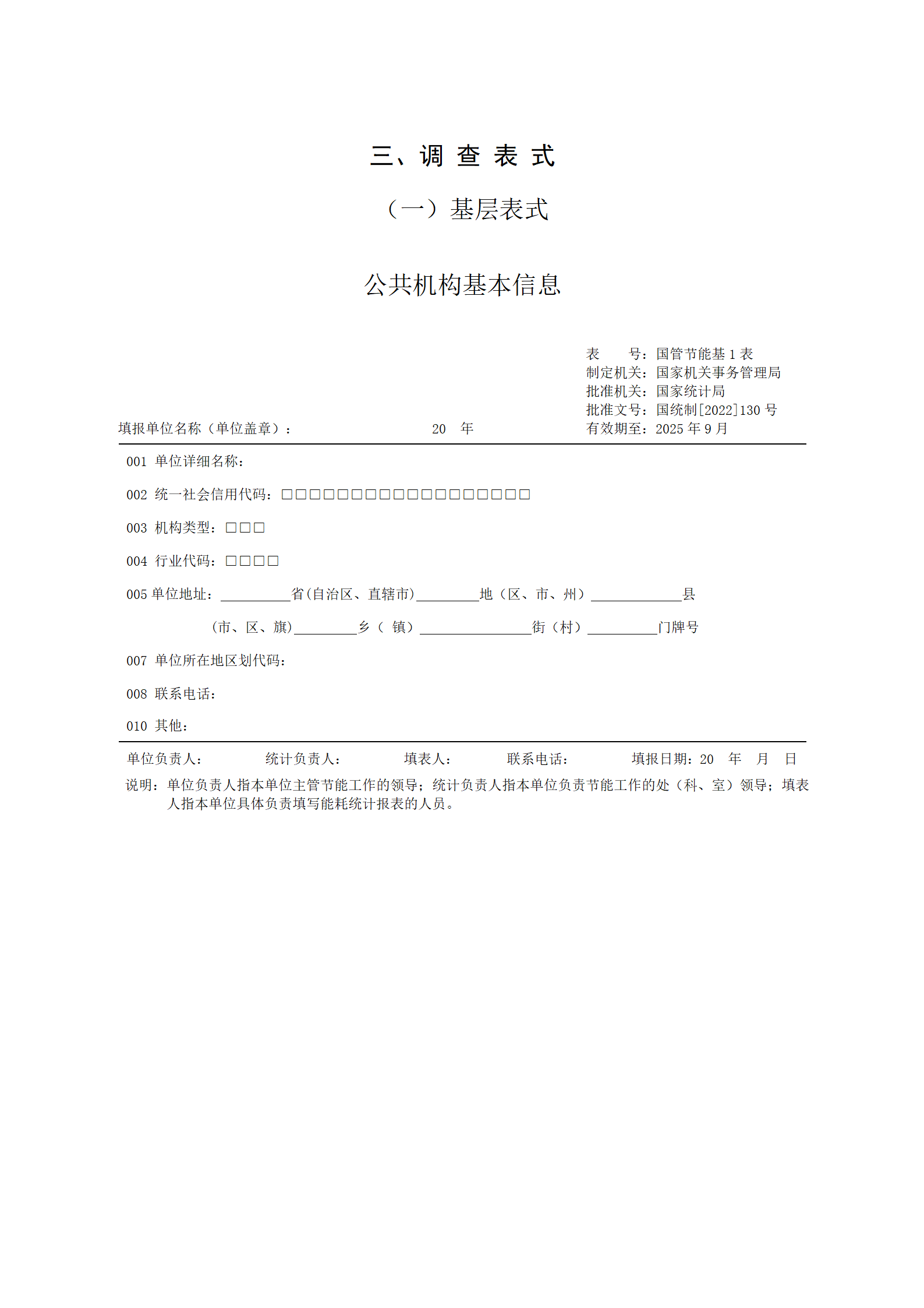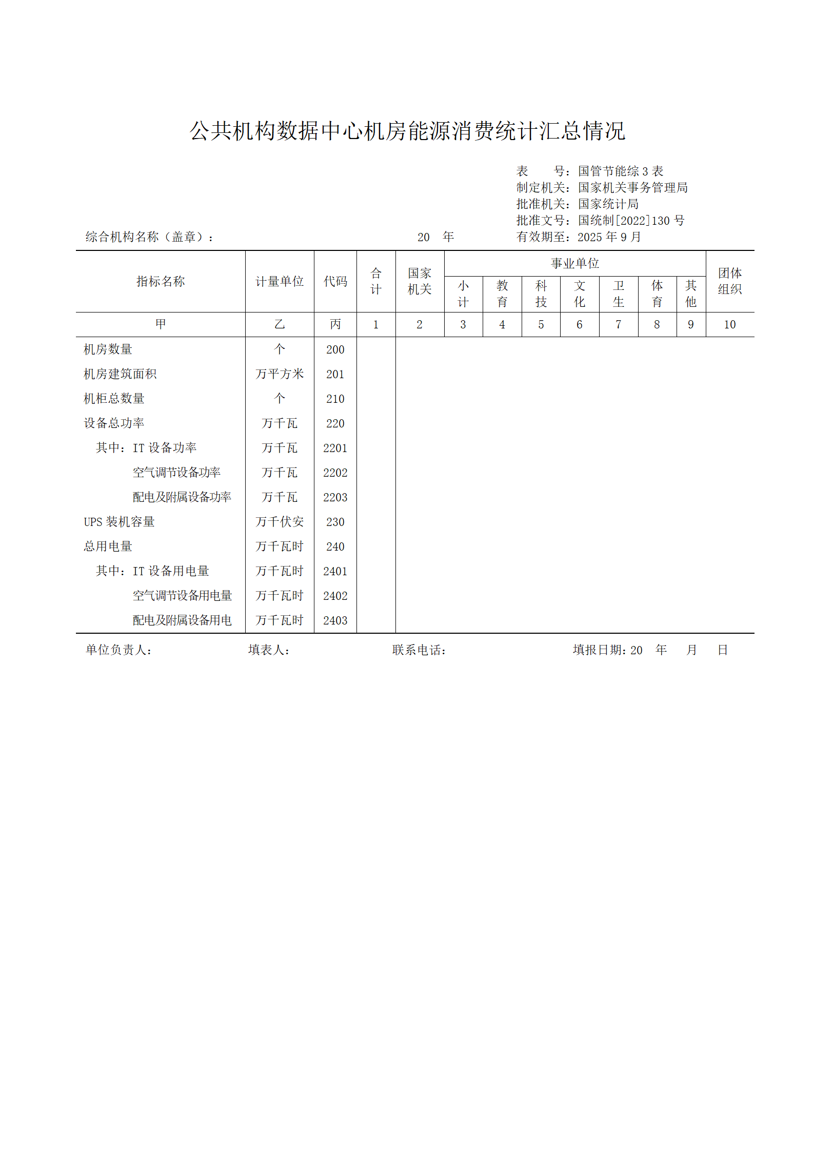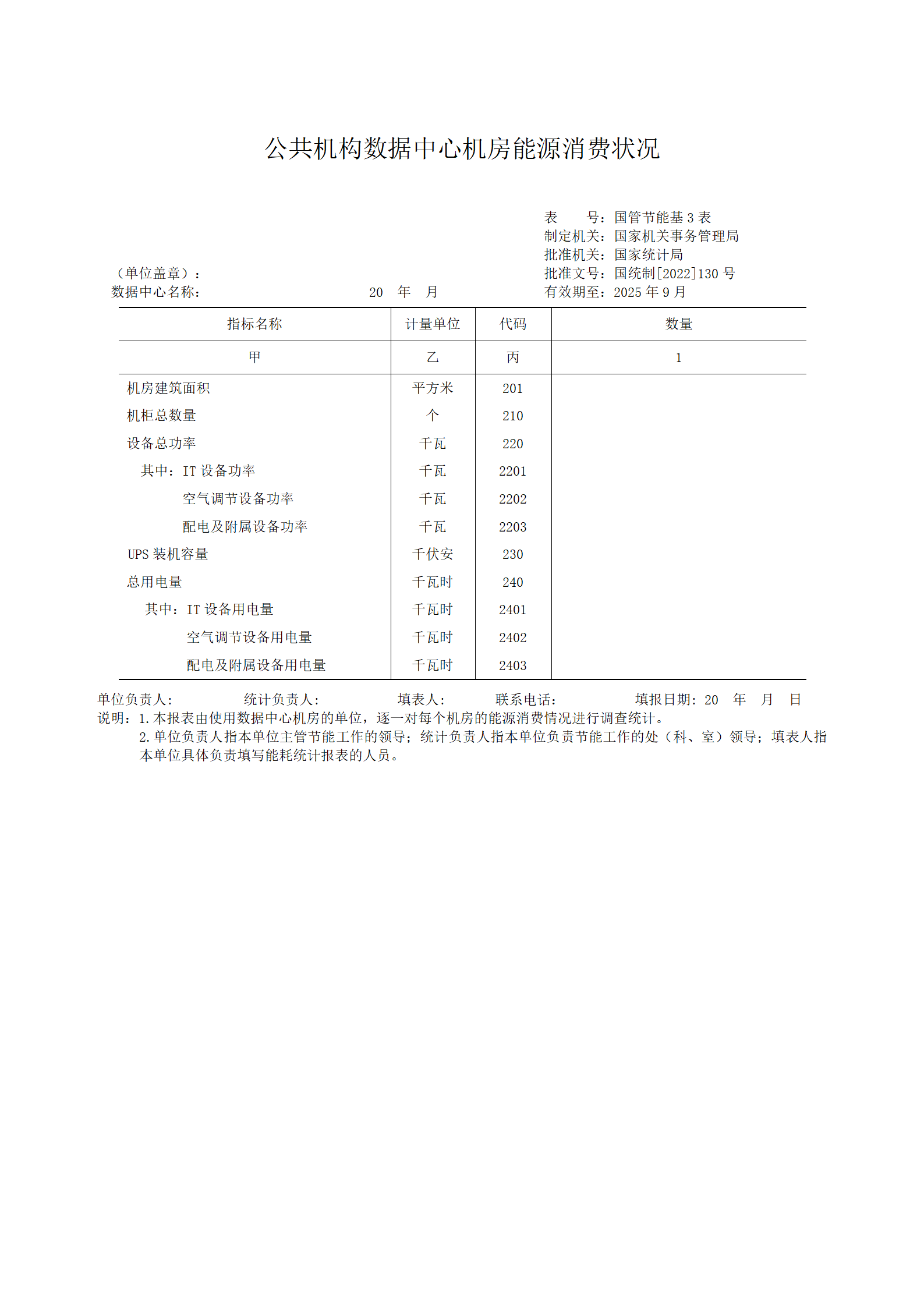 10月9日,國家機關(guān)事務(wù)管理局印發(fā)《公共機構(gòu)能源資源消費統(tǒng)計調(diào)查制度》,刪除了數(shù)據(jù)中心機房報表中“其他能源消費量”指標;增設(shè)了“太陽能光電系統(tǒng)發(fā)電量”指標;將“組織機構(gòu)代碼(或統(tǒng)一社會信用代碼)”調(diào)整為“統(tǒng)一社會信用代碼”;進一步明確了建筑面積、用能人數(shù)、數(shù)據(jù)中心機房等主要指標解釋。 詳情如下: 國家機關(guān)事務(wù)管理局關(guān)于印發(fā)《公共機構(gòu)能源資源消費統(tǒng)計調(diào)查制度》的通知 國管節(jié)能〔2022〕301號 各省、自治區(qū)、直轄市和新疆生產(chǎn)建設(shè)兵團機關(guān)事務(wù)管理部門,廣東省能源局,西藏自治區(qū)發(fā)展改革委,中央國家機關(guān)各部門: 根據(jù)《中華人民共和國統(tǒng)計法》、《中華人民共和國節(jié)約能源法》、《公共機構(gòu)節(jié)能條例》和國家統(tǒng)計局關(guān)于部門統(tǒng)計調(diào)查制度的要求,我局修訂了《公共機構(gòu)能源資源消費統(tǒng)計調(diào)查制度》(以下簡稱《統(tǒng)計調(diào)查制度》),已報經(jīng)國家統(tǒng)計局批準,現(xiàn)印發(fā)給你們,請按照執(zhí)行。 一、主要修訂內(nèi)容 刪除了數(shù)據(jù)中心機房報表中“其他能源消費量”指標;增設(shè)了“太陽能光電系統(tǒng)發(fā)電量”指標;將“組織機構(gòu)代碼(或統(tǒng)一社會信用代碼)”調(diào)整為“統(tǒng)一社會信用代碼”;進一步明確了建筑面積、用能人數(shù)、數(shù)據(jù)中心機房等主要指標解釋。 二、有關(guān)要求 (一)各部門、各地區(qū)公共機構(gòu)節(jié)能管理部門要結(jié)合實際編制《統(tǒng)計調(diào)查制度》實施方案,進一步細化職責分工,明確管理范圍內(nèi)各級各類公共機構(gòu)有關(guān)報表的填報周期、報送方式及時限等,于今年10月31日前報送我局公共機構(gòu)節(jié)能管理司備案。 (二)各部門、各地區(qū)公共機構(gòu)節(jié)能管理部門要定期對本級和本地區(qū)公共機構(gòu)能源資源消費狀況進行分析,形成《公共機構(gòu)能源資源消費統(tǒng)計調(diào)查分析報告》,與統(tǒng)計數(shù)據(jù)同步報送。 (三)各部門、各地區(qū)公共機構(gòu)節(jié)能管理部門要建立數(shù)據(jù)質(zhì)量抽查和會審機制,每年對所轄(屬)5%以上的公共機構(gòu)進行抽查,所轄(屬)公共機構(gòu)50家以上的節(jié)能管理部門每年要組織上年度能耗數(shù)據(jù)會審,確保統(tǒng)計數(shù)據(jù)完整、真實、準確。 國家機關(guān)事務(wù)管理局 2022年9月15日