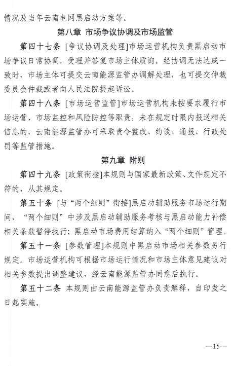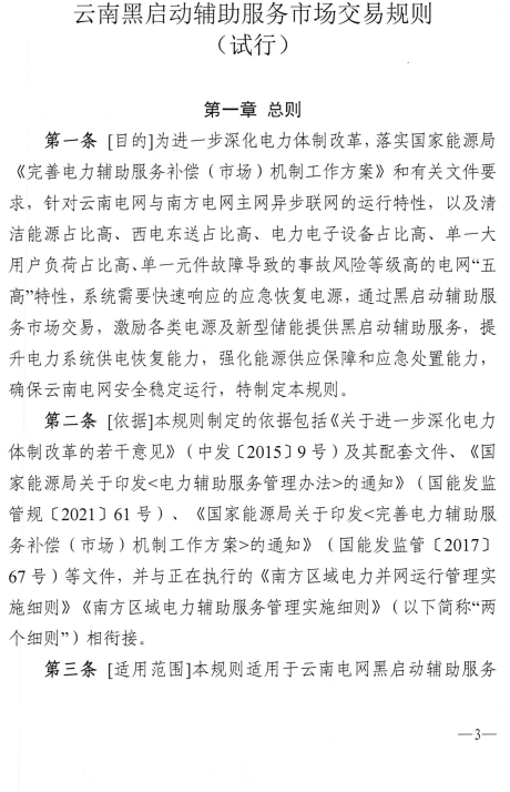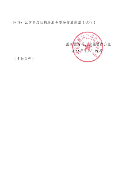 10月19日,國(guó)家能源局云南監(jiān)管辦公室印發(fā)《云南黑啟動(dòng)輔助服務(wù)市場(chǎng)交易規(guī)則(試行)》的通知。