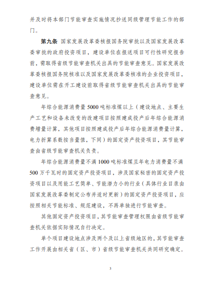 11月25日,國家發(fā)展改革委關(guān)于征求《固定資產(chǎn)投資項(xiàng)目節(jié)能審查辦法(征求意見稿)》意見的公告,征求意見指出: 政府投資項(xiàng)目:建設(shè)單位在報(bào)送項(xiàng)目可行性研究報(bào)告前,需要取得節(jié)能審查機(jī)關(guān)出具的節(jié)能審查意見。 企業(yè)投資項(xiàng)目:建設(shè)單位需在開工建設(shè)前取得節(jié)能審查機(jī)關(guān)出具的節(jié)能審查意見。 未進(jìn)行節(jié)能審查或節(jié)能審查未通過的項(xiàng)目,不得開工建設(shè),已經(jīng)建成的不得投入生產(chǎn)使用。 其中,年綜合能源消費(fèi)量5000噸標(biāo)準(zhǔn)煤以上的固定資產(chǎn)投資項(xiàng)目,其節(jié)能審查由省級節(jié)能審查機(jī)關(guān)負(fù)責(zé)。 年綜合能源消費(fèi)量不滿1000噸標(biāo)準(zhǔn)煤且年電力消費(fèi)量不滿500萬千瓦時(shí)的固定資產(chǎn)投資項(xiàng)目,涉及國家秘密的固定資產(chǎn)投資項(xiàng)目以及用能工藝簡單、節(jié)能潛力小的行業(yè)(具體行業(yè)目錄由國家發(fā)展改革委制定公布并適時(shí)更新)的固定資產(chǎn)投資項(xiàng)目,應(yīng)按照相關(guān)節(jié)能標(biāo)準(zhǔn)、規(guī)范建設(shè),不再單獨(dú)進(jìn)行節(jié)能審查。 原文如下: 國家發(fā)展改革委關(guān)于征求《固定資產(chǎn)投資項(xiàng)目節(jié)能審查辦法(征求意見稿)》意見的公告 為全面貫徹落實(shí)黨的二十大精神,完善能源消耗總量和強(qiáng)度調(diào)控,進(jìn)一步促進(jìn)固定資產(chǎn)投資項(xiàng)目合理利用能源,國家發(fā)展改革委會同有關(guān)方面在深入開展調(diào)研、廣泛聽取意見的基礎(chǔ)上,修訂形成了《固定資產(chǎn)投資項(xiàng)目節(jié)能審查辦法(征求意見稿)》,現(xiàn)向社會公開征求意見。 此次征求意見的時(shí)間為2022年11月25日至2022年12月24日。請登錄國家發(fā)展改革委門戶網(wǎng)站(.cn)首頁“意見征求”專欄,進(jìn)入“《固定資產(chǎn)投資項(xiàng)目節(jié)能審查辦法(征求意見稿)》公開征求意見”欄目,提出意見建議。 感謝您的參與和支持! 附件:1.固定資產(chǎn)投資項(xiàng)目節(jié)能審查辦法(征求意見稿) 2.修訂說明 國家發(fā)展改革委 2022年11月25日