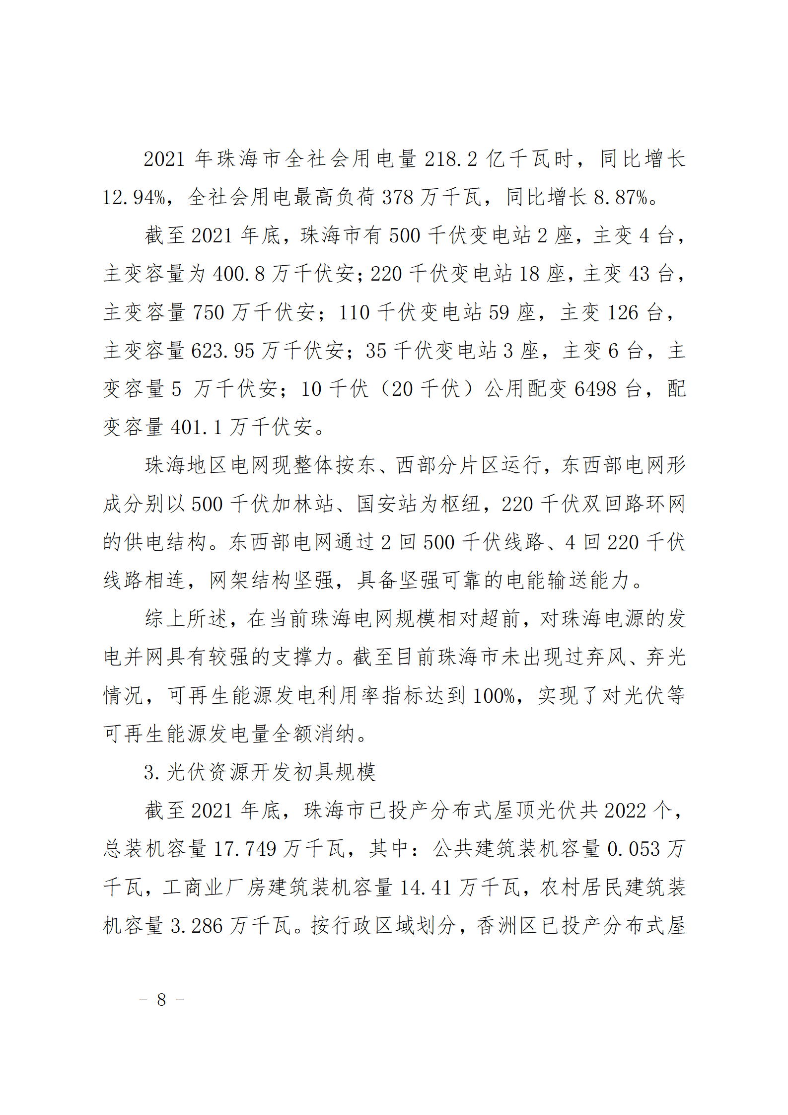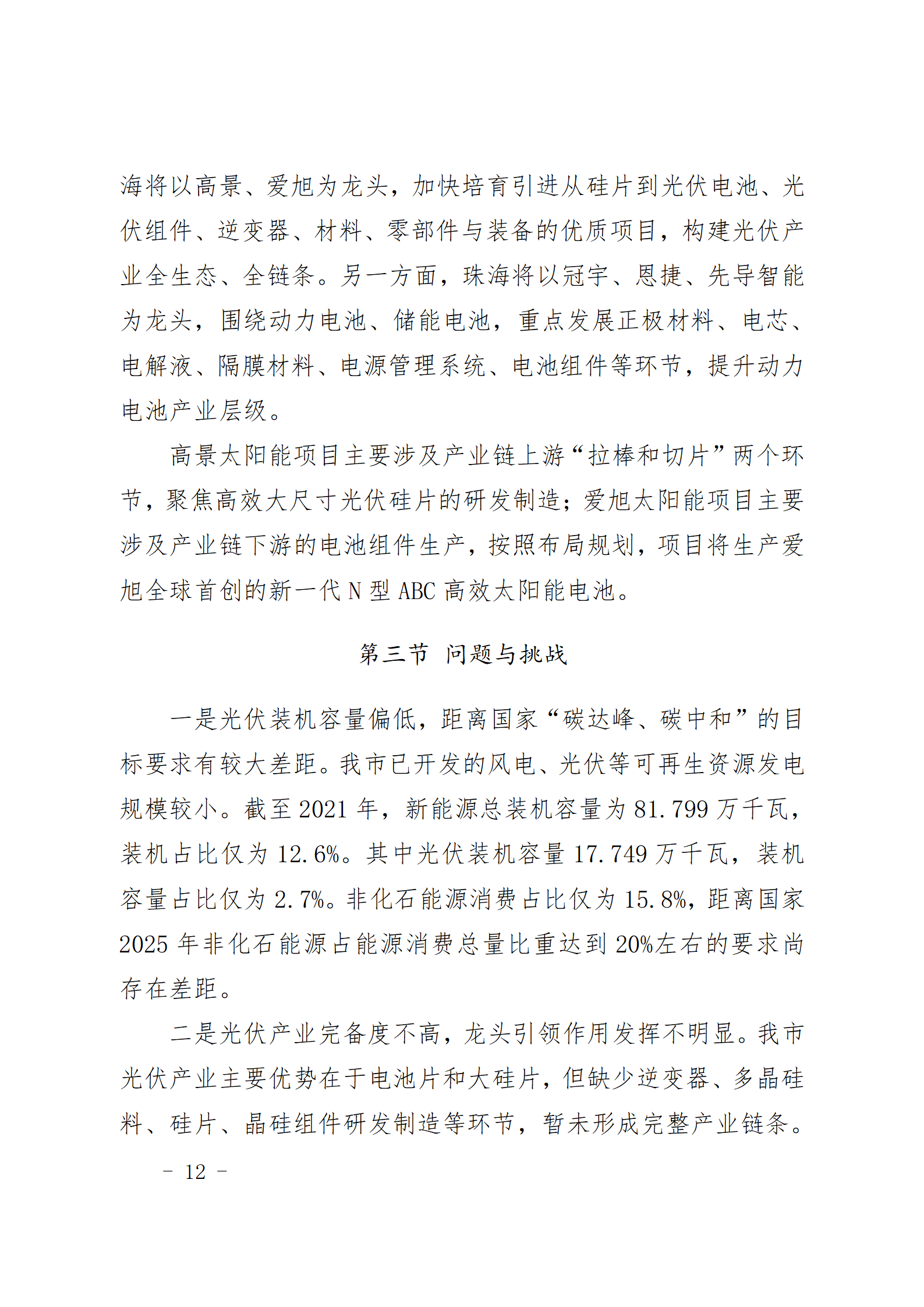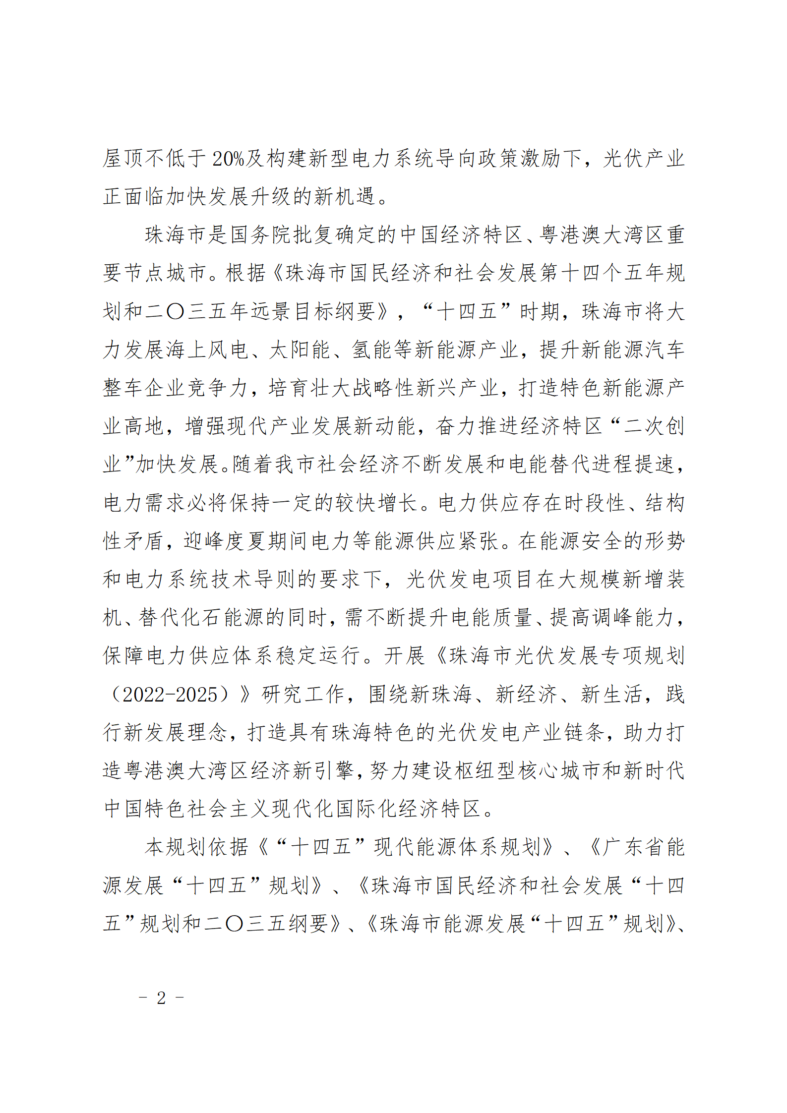 儲能方面:結合珠海地區(qū)光伏資源稟賦特性,積極推進“光儲一體化”建設。珠海市集中式光伏電站應按照“不低于項目裝機量的10%、充放電時長2小時”進行儲能裝置配置(若國家能源主管部門有新的要求,以新要求為準),儲能電池等設備應滿足行業(yè)相關標準,且與光伏電站同步建成。 詳情如下: 珠海市發(fā)展和改革局關于印發(fā)《珠海市光伏電力發(fā)展規(guī)劃(2022-2025年)》的通知 各區(qū)政府(管委會),市直各單位,各有關企業(yè): 為深入貫徹“四個革命、一個合作”能源安全新戰(zhàn)略,落實碳達峰、碳中和目標,推動光伏產業(yè)高質量發(fā)展,打造具有珠海特色的光伏發(fā)電產業(yè)鏈條,構筑綠色能源發(fā)展體系,我局組織編寫了《珠海市光伏電力發(fā)展規(guī)劃(2022-2025年)》。現印發(fā)給你們,請認真組織實施。實施中遇到的問題,請徑向我局反映。 附件:珠海市光伏電力發(fā)展規(guī)劃(2022-2025年) 珠海市發(fā)展和改革局 2022年12月26日
