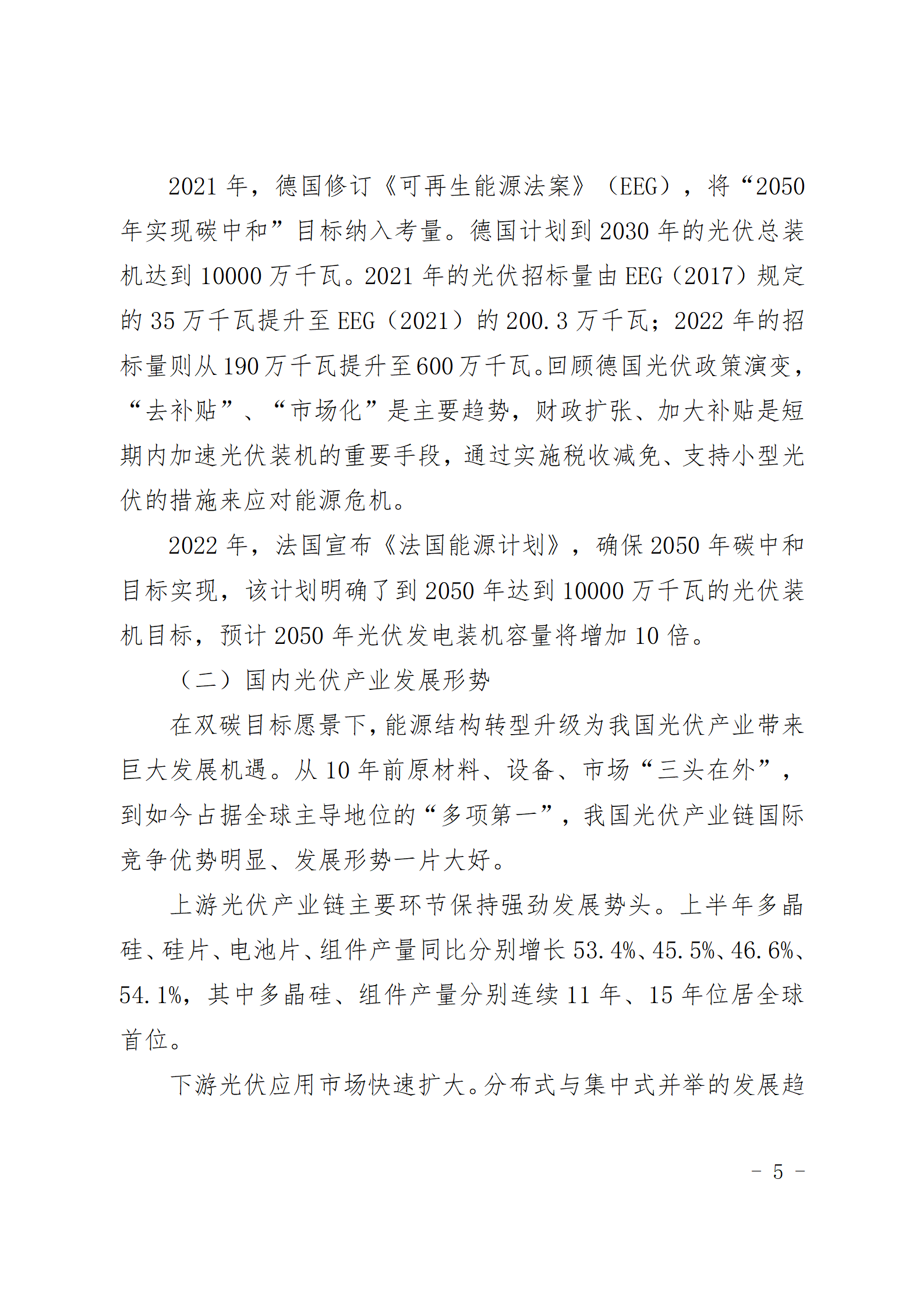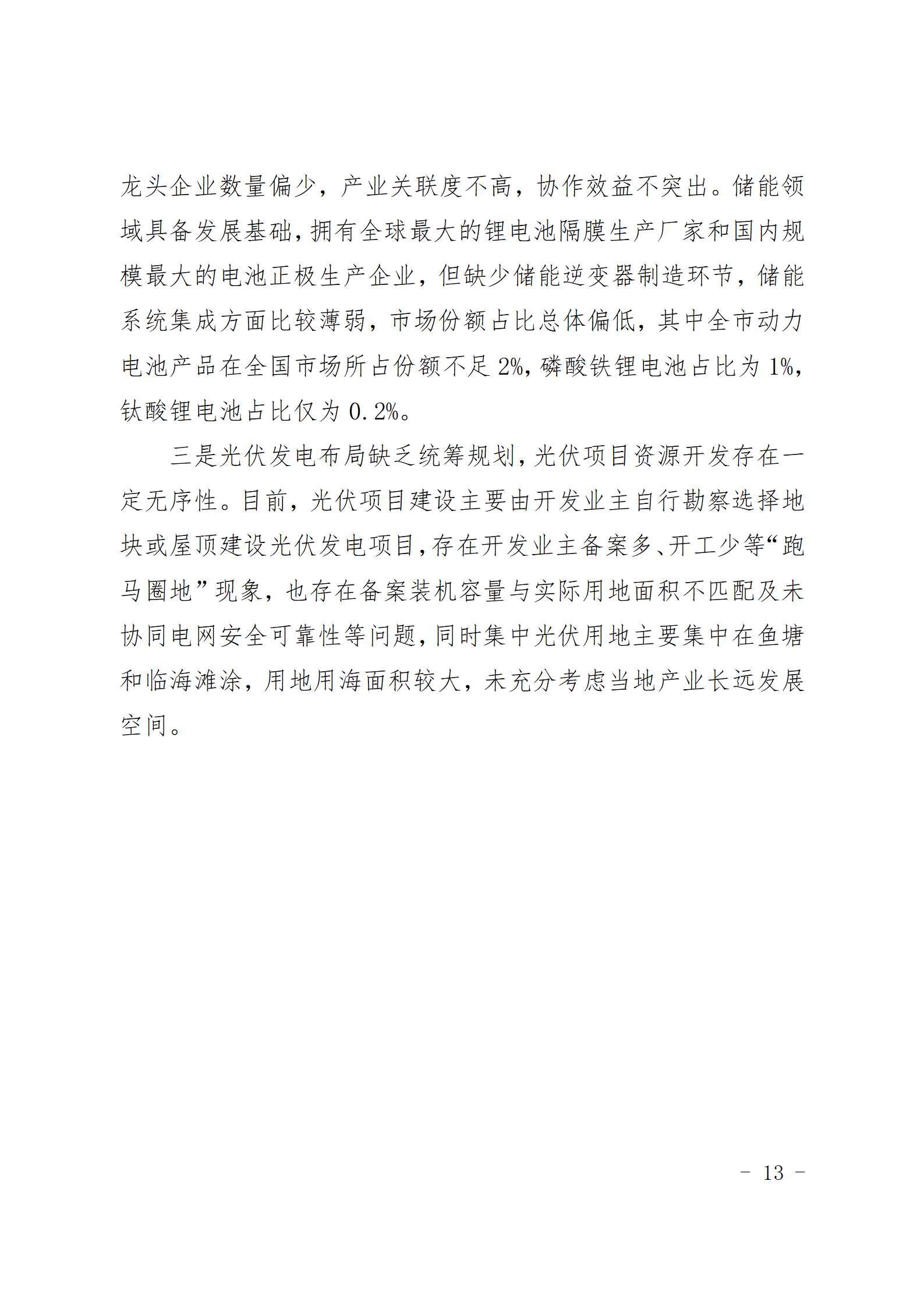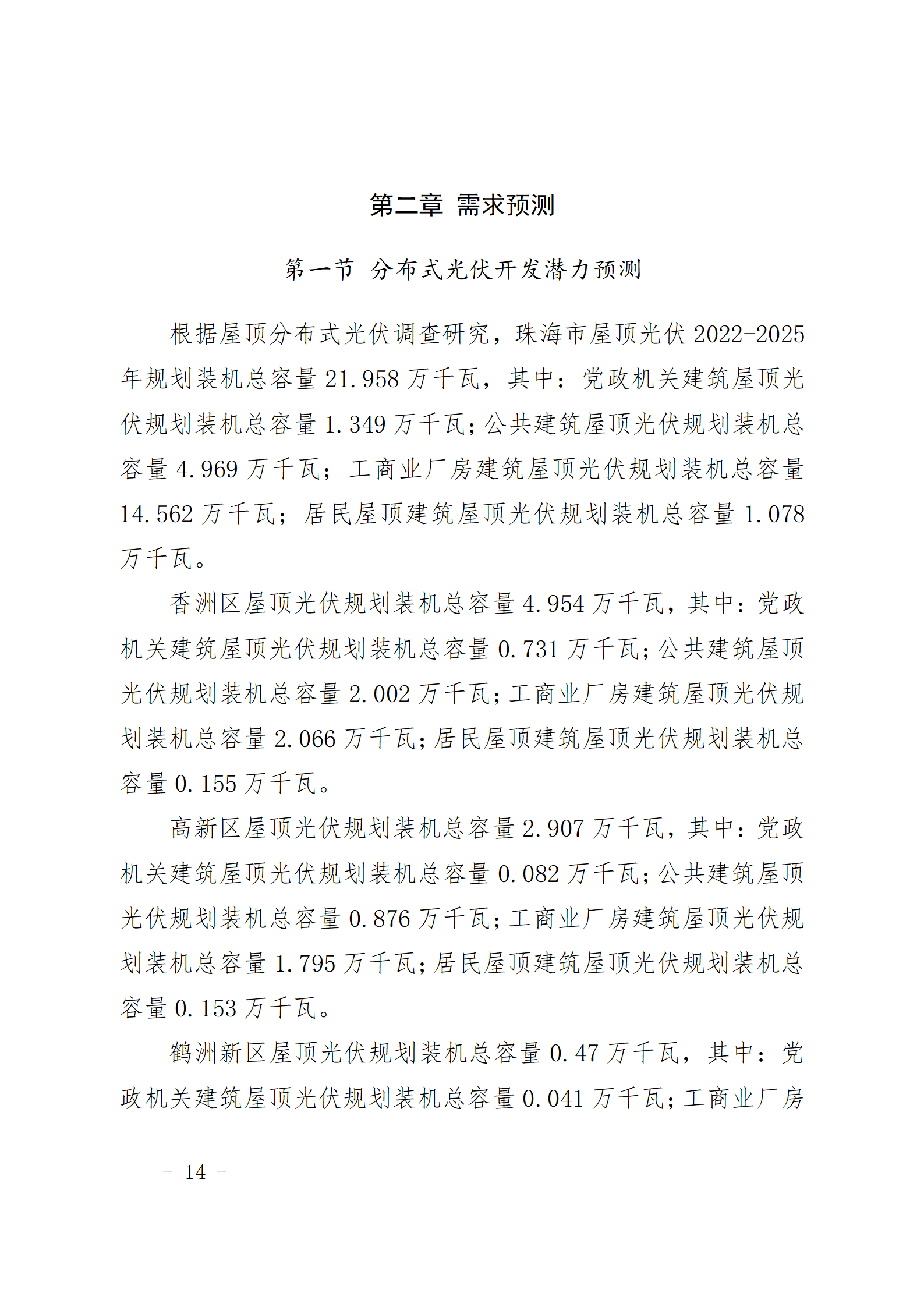 儲能方面:結合珠海地區(qū)光伏資源稟賦特性,積極推進“光儲一體化”建設。珠海市集中式光伏電站應按照“不低于項目裝機量的10%、充放電時長2小時”進行儲能裝置配置(若國家能源主管部門有新的要求,以新要求為準),儲能電池等設備應滿足行業(yè)相關標準,且與光伏電站同步建成。 詳情如下: 珠海市發(fā)展和改革局關于印發(fā)《珠海市光伏電力發(fā)展規(guī)劃(2022-2025年)》的通知 各區(qū)政府(管委會),市直各單位,各有關企業(yè): 為深入貫徹“四個革命、一個合作”能源安全新戰(zhàn)略,落實碳達峰、碳中和目標,推動光伏產業(yè)高質量發(fā)展,打造具有珠海特色的光伏發(fā)電產業(yè)鏈條,構筑綠色能源發(fā)展體系,我局組織編寫了《珠海市光伏電力發(fā)展規(guī)劃(2022-2025年)》。現印發(fā)給你們,請認真組織實施。實施中遇到的問題,請徑向我局反映。 附件:珠海市光伏電力發(fā)展規(guī)劃(2022-2025年) 珠海市發(fā)展和改革局 2022年12月26日