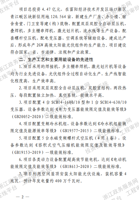 星帥爾年產(chǎn)2GW高效太陽能光伏組件建設項目節(jié)能審查獲批2023-01-12 15:03來源:gessey瀏覽數(shù):139次