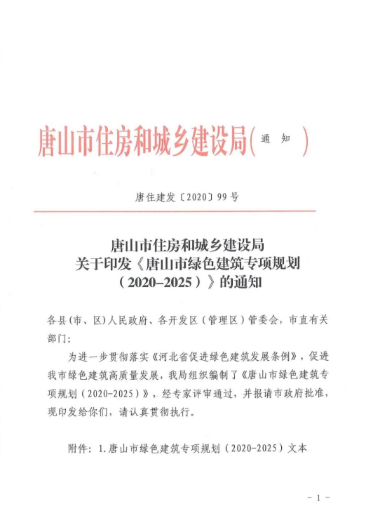 近日,唐山市住建局印發(fā)《唐山市綠色建筑專項規(guī)劃(2020-2025)》?!兑?guī)劃》中提出:到2025年,全市累計竣工和在建被動式超低能耗建筑面積不低于132萬平方米,其中中心城區(qū)不低于60萬平方米;遠景2035年全市累計竣工和在建被動式超低能耗建筑面積不低于298萬平方米,其中中心城區(qū)不低于140萬平方米。 可再生能源建筑應(yīng)用方面,《規(guī)劃》指出: 1、 對新建國家機關(guān)辦公建筑、政府投資或者以政府投資為主以及總建筑面積兩萬平米以上的其他公共建筑,強制要求按照國家和省有關(guān)標(biāo)準(zhǔn)利用可再生能源。 城鎮(zhèn)規(guī)劃區(qū)內(nèi)新建、改建、擴建的十二層以下住宅及有集中熱水要求的學(xué)生公寓、酒店、幼兒園、體育場館、醫(yī)院、休閑會所等熱水量消耗大的單位,必須設(shè)置太陽能集中或分戶光熱系統(tǒng),并與建筑同步設(shè)計與施工。 2、 因地制宜發(fā)展可再生能源 大力推進太陽能綜合利用,加快發(fā)展高層建筑太陽能熱水應(yīng)用技術(shù),推廣熱泵系統(tǒng)建筑應(yīng)用,鼓勵具備條件的建筑工程應(yīng)用太陽能光伏系統(tǒng)。按照區(qū)域資源優(yōu)勢,因地制宜發(fā)展可再生能源利用,在適宜發(fā)展淺層地能的地區(qū),積極發(fā)展地源熱泵系統(tǒng);工業(yè)發(fā)達的地區(qū),優(yōu)先利用余熱熱泵供暖;對于山區(qū)和濱海地區(qū)應(yīng)充分利用風(fēng)能資源。 如路南區(qū)以南湖生態(tài)城為代表,重點應(yīng)用太陽能供熱技術(shù);市區(qū)的主要公共場所推廣應(yīng)用風(fēng)光互補照明技術(shù);市內(nèi)的一些主干道路段鼓勵發(fā)展風(fēng)光互補路燈,利用自然的風(fēng)能與太陽能。 《規(guī)劃》還可再生能源利用發(fā)展路線進行了規(guī)劃: 1、 持續(xù)推進太陽能熱水系統(tǒng)建筑應(yīng)用普及工作,實施太陽能熱水系統(tǒng)與建筑一體化設(shè)計和施工。擴大可再生能源在建筑中的應(yīng)用領(lǐng)域,積極推動可再生能源在建筑供熱、供電、儲能以及能源轉(zhuǎn)換等方面的利用。 2、 一是加快開展可再生能源供熱等燃煤替代應(yīng)用。因地制宜推進太陽能集熱、電供暖、地?zé)峁┡?、跨季?jié)儲熱、生物質(zhì)能供暖等技術(shù)的建筑應(yīng)用。 3、 完善新能源設(shè)備及配套零部件標(biāo)準(zhǔn)體系,加強新能源設(shè)備檢測和認證平臺建設(shè),提高應(yīng)用技術(shù)標(biāo)準(zhǔn),優(yōu)化技術(shù)設(shè)備產(chǎn)業(yè)鏈,依托產(chǎn)業(yè)園區(qū)建設(shè)可再生能源產(chǎn)業(yè)創(chuàng)新創(chuàng)業(yè)集聚區(qū)。 4、 大力推進鄉(xiāng)村既有家庭屋頂光伏建設(shè)。以新農(nóng)村建設(shè)為契機,推進鄉(xiāng)村居民獨立住宅屋頂或庭院,以及新農(nóng)村集中連片住房等既有建筑屋頂建設(shè)家庭屋頂光伏發(fā)電系統(tǒng)。注重試點示范,重點結(jié)合農(nóng)村安居宜居美居改造、美麗鄉(xiāng)村建設(shè)等工作,著力推動集中連片的光伏示范建設(shè),推進農(nóng)村村級組織等集體屋頂建設(shè)光伏發(fā)電系統(tǒng),至2025年覆蓋大部分鄉(xiāng)村,融入百姓日常生活。 通知如下: