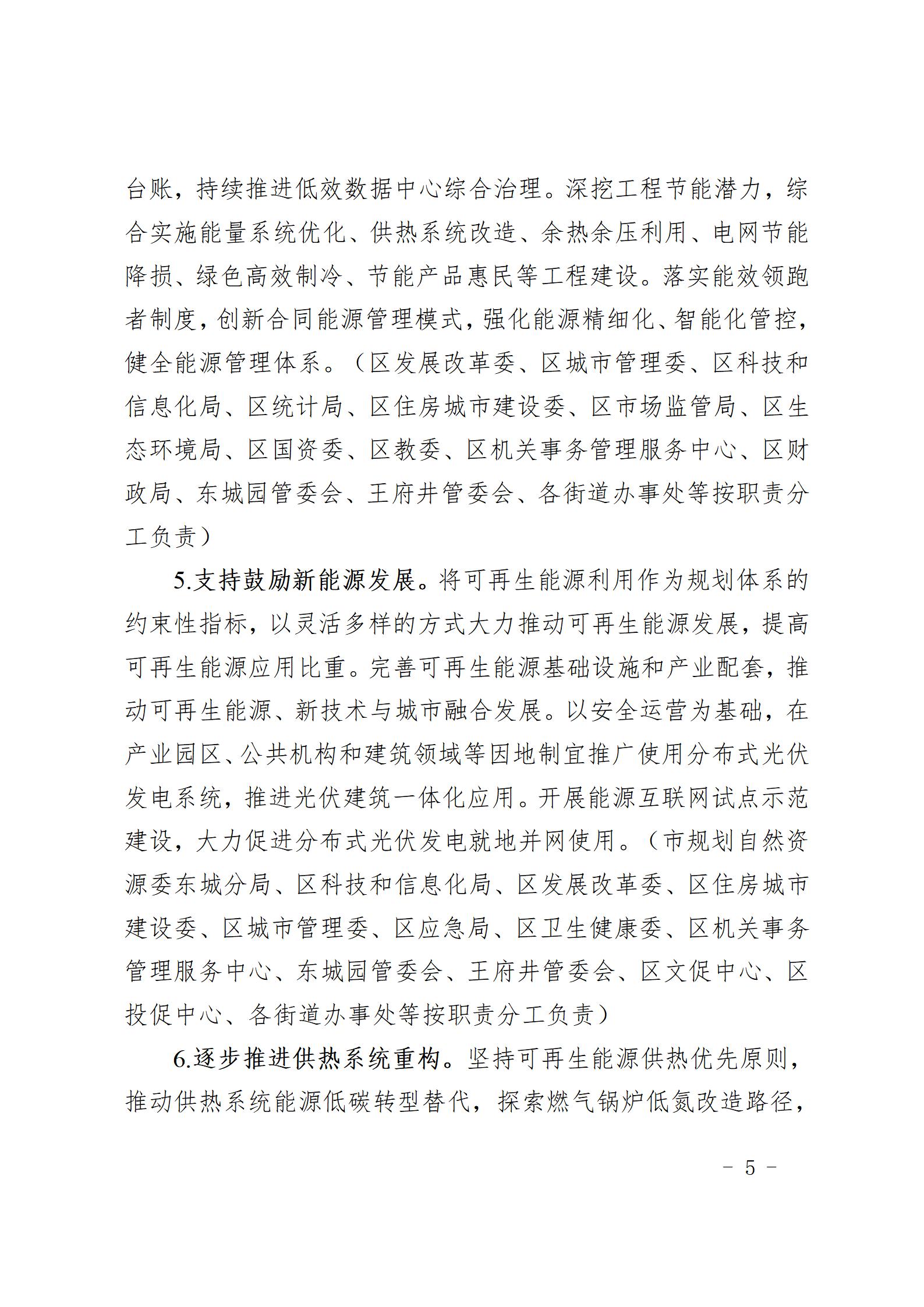 4月27日,北京市東城區(qū)發(fā)展和改革委員會發(fā)布關(guān)于對《東城區(qū)碳達(dá)峰實(shí)施方案(征求意見稿)》公開征求意見的通知,通知提到,主要目標(biāo)為:“十四五”期間,單位地區(qū)生產(chǎn)總值能耗和二氧化碳排放達(dá)到市級要求,安全韌性低碳的能源體系建設(shè)取得階段性進(jìn)展,綠色低碳技術(shù)推廣應(yīng)用取得明顯進(jìn)展,碳達(dá)峰、碳中和的政策體系和工作機(jī)制進(jìn)一步完善。到2025年,可再生能源消費(fèi)比重完成市級下達(dá)目標(biāo),單位地區(qū)生產(chǎn)總值能耗比2020年下降14%,單位地區(qū)生產(chǎn)總值二氧化碳排放下降確保完成市級下達(dá)目標(biāo)。 重點(diǎn)任務(wù)方面,支持鼓勵新能源發(fā)展。將可再生能源利用作為規(guī)劃體系的約束性指標(biāo),以靈活多樣的方式大力推動可再生能源發(fā)展,提高可再生能源應(yīng)用比重。完善可再生能源基礎(chǔ)設(shè)施和產(chǎn)業(yè)配套,推動可再生能源、新技術(shù)與城市融合發(fā)展。以安全運(yùn)營為基礎(chǔ),在產(chǎn)業(yè)園區(qū)、公共機(jī)構(gòu)和建筑領(lǐng)域等因地制宜推廣使用分布式光伏發(fā)電系統(tǒng),推進(jìn)光伏建筑一體化應(yīng)用。開展能源互聯(lián)網(wǎng)試點(diǎn)示范建設(shè),大力促進(jìn)分布式光伏發(fā)電就地并網(wǎng)使用。 積極推動試點(diǎn)示范項(xiàng)目。以重點(diǎn)項(xiàng)目為抓手,推動開展典型應(yīng)用場景下多領(lǐng)域、多層級、多方位的技術(shù)集成與低碳技術(shù)應(yīng)用試點(diǎn)示范。支持綠色低碳、零碳及負(fù)排放技術(shù)的應(yīng)用示范,鼓勵重點(diǎn)區(qū)域、街道社區(qū)從規(guī)劃設(shè)計(jì)和項(xiàng)目示范入手,綜合利用光伏發(fā)電、太陽能發(fā)熱、空氣能供熱等可再生能源技術(shù),建設(shè)資源循環(huán)利用的近零碳排放示范項(xiàng)目,實(shí)現(xiàn)再生資源應(yīng)用盡用。 助力建筑領(lǐng)域綠色低碳轉(zhuǎn)型。嚴(yán)格落實(shí)建筑節(jié)能設(shè)計(jì)標(biāo)準(zhǔn)等節(jié)能減碳標(biāo)準(zhǔn),大力發(fā)展綠色建筑,新建建筑執(zhí)行綠色建筑三星級標(biāo)準(zhǔn)。積極推廣超低能耗建筑,最大限度降低建筑碳排放。按照碳達(dá)峰目標(biāo)和階段性要求,完善低碳建筑標(biāo)準(zhǔn)體系。建筑領(lǐng)域因地制宜推廣太陽能光伏、光熱等技術(shù)應(yīng)用,具備條件的新建建筑安裝太陽能系統(tǒng),新建政府投資工程至少使用一種可再生能源。 完善重點(diǎn)碳排放單位管理制度?!笆奈濉逼陂g,區(qū)管企業(yè)率先實(shí)施可再生能源替代行動,實(shí)現(xiàn)所屬建筑、基礎(chǔ)設(shè)施分布式光伏發(fā)電等可再生能源應(yīng)用盡用。 健全政策體系和市場機(jī)制。完善節(jié)能低碳標(biāo)準(zhǔn)體系,強(qiáng)化能源消耗總量和強(qiáng)度調(diào)控,重點(diǎn)控制化石能源消費(fèi),逐步轉(zhuǎn)向碳排放總量和強(qiáng)度“雙控”制度,發(fā)揮標(biāo)準(zhǔn)約束和倒逼引領(lǐng)作用。加大財(cái)政資金對低碳技術(shù)和項(xiàng)目的支持力度,逐步削減對燃?xì)夤┡然茉聪M(fèi)的政策補(bǔ)貼,加強(qiáng)對光伏發(fā)電等可再生能源開發(fā)利用的政策支持。推動構(gòu)建綠色金融體系,拓展綠色金融服務(wù)模式,引導(dǎo)鼓勵金融機(jī)構(gòu)持續(xù)豐富綠色債券、綠色信貸、綠色保險(xiǎn)等金融產(chǎn)品和服務(wù),積極支持有利于低碳發(fā)展的信貸、債券、基金、期貨、保險(xiǎn)等綠色金融創(chuàng)新實(shí)踐。 原文如下: 關(guān)于對《東城區(qū)碳達(dá)峰實(shí)施方案(征求意見稿)》公開征求意見的通知 為全面貫徹落實(shí)黨的二十大精神和習(xí)近平生態(tài)文明思想,完整、準(zhǔn)確、全面貫徹新發(fā)展理念,堅(jiān)定不移走生態(tài)優(yōu)先、綠色低碳的高質(zhì)量發(fā)展道路,深入推動?xùn)|城區(qū)經(jīng)濟(jì)社會綠色低碳發(fā)展,東城區(qū)發(fā)展改革委起草了《東城區(qū)碳達(dá)峰實(shí)施方案(征求意見稿)》,現(xiàn)向社會公開征求意見,歡迎社會各界提出意見建議。 公開征集意見時間為:2023年4月27日至2023年5月6日。 意見反饋渠道如下: 1.電子郵箱:fgwzylyk@bjdch.gov.cn 2.通訊地址:北京市東城區(qū)東打磨廠街3-1號匯泉大廈 東城區(qū)發(fā)展和改革委員會(請?jiān)谛欧馍献⒚鳌耙庖娬骷弊謽樱?/span> 3.電話: 010-64079927 4.傳真: 010-64079927 附件1:東城區(qū)碳達(dá)峰實(shí)施方案(征求意見稿)