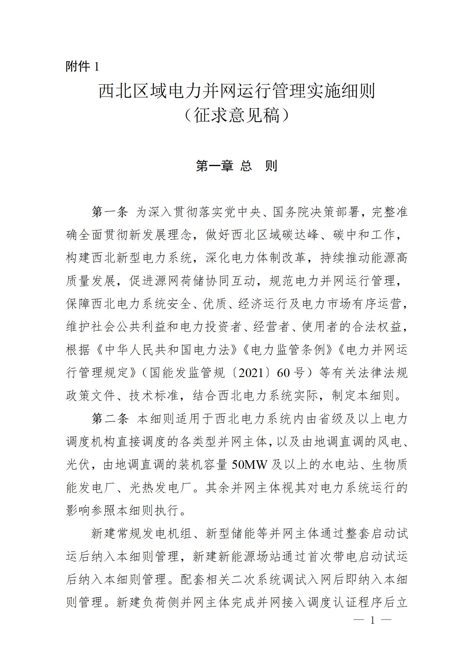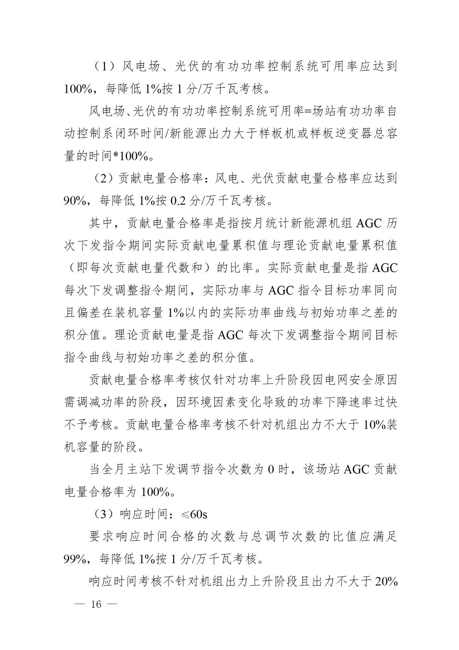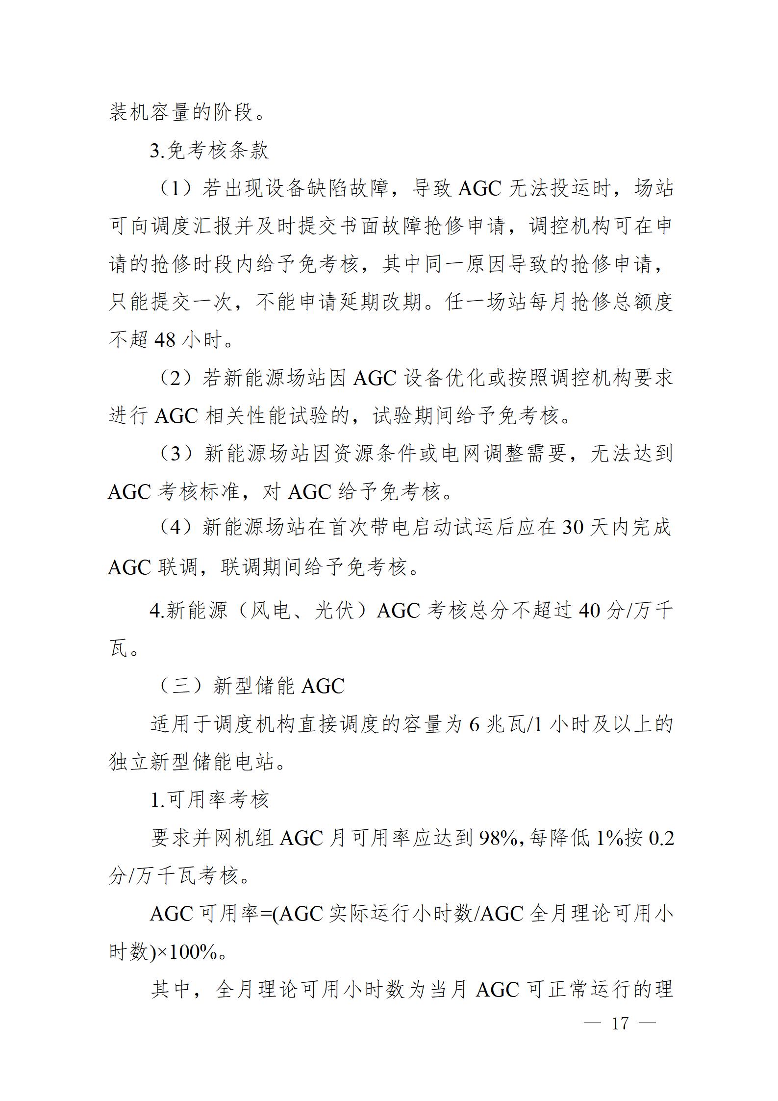 5月16日,西北能監(jiān)辦發(fā)布西北區(qū)域“兩個細則”征求意見稿。新建常規(guī)發(fā)電機組、新型儲能等并網(wǎng)主體通過整套啟動試運后納入本細則管理,新建新能源場站通過首次帶電啟動試運后納入本細則管理。全部并網(wǎng)運行管理考核費用、發(fā)電機組調(diào)試運行期差額資金的50%、符合國家有關(guān)法律法規(guī)規(guī)定的其他資金。上述費用減去輔助服務(wù)補償所需總金額的差額部分由各省(區(qū),獨立控)內(nèi)發(fā)電側(cè)并網(wǎng)主體(含抽蓄)、新型儲能按照上網(wǎng)電量的比例進行分攤。輔助服務(wù)補償所需總費用與并網(wǎng)運行管理考核總費用依照并網(wǎng)主體并網(wǎng)考核與輔助服務(wù)補償分值計算,每分對應(yīng)金額均為1000元。 一次調(diào)頻 新型儲能一次調(diào)頻服務(wù)補償按照一次調(diào)頻月度動作積分電量150分/萬千瓦時(15元/kWh)補償。 AGC服務(wù) 新型儲能AGC適用于調(diào)度機構(gòu)直接調(diào)度的容量為6MW/1h及以上的獨立新型儲能電站。 新型儲能并網(wǎng)主體月可用率達到98%以上,每提高1%補償1分/萬千瓦(0.1元/kW)。 新型儲能在AGC指令下,實際最大放電功率加上最大充電功率計算調(diào)節(jié)容量,按0.2分/萬千瓦(0.02元/kW)補償。 新型儲能貢獻電量合格率補償=新型儲能貢獻合格率×3分/萬千瓦(0.3元/kW)。 黑啟動 新能源場站(風電場、光伏電站)及新型儲能電站每月2分/萬千瓦(0.2元/kW),對并網(wǎng)主體的補償最高不超過最高300分/月(30萬元/月)補償。 穩(wěn)控裝置切負荷 區(qū)域穩(wěn)控裝置動作切抽蓄電站抽水負荷、新型儲能等,按每次補償4分/萬千瓦(0.4元/kW)。 對于納入跨區(qū)超特高壓直流或跨省及重要通道安全穩(wěn)定控制系統(tǒng)切負荷范圍、且非直流配套電源的抽蓄電站(抽水負荷)、新型儲能等,若有新增安控裝置,則按照新投運的安全自動裝置套數(shù),一次性給予300分/套(30萬元/套)的補償。若在原有安控裝置進行改造,則按照改造的套數(shù),一次性給予30分/套(3萬元/套)的補償。 附件1:西北區(qū)域電力并網(wǎng)運行管理實施細則(征求意見稿)