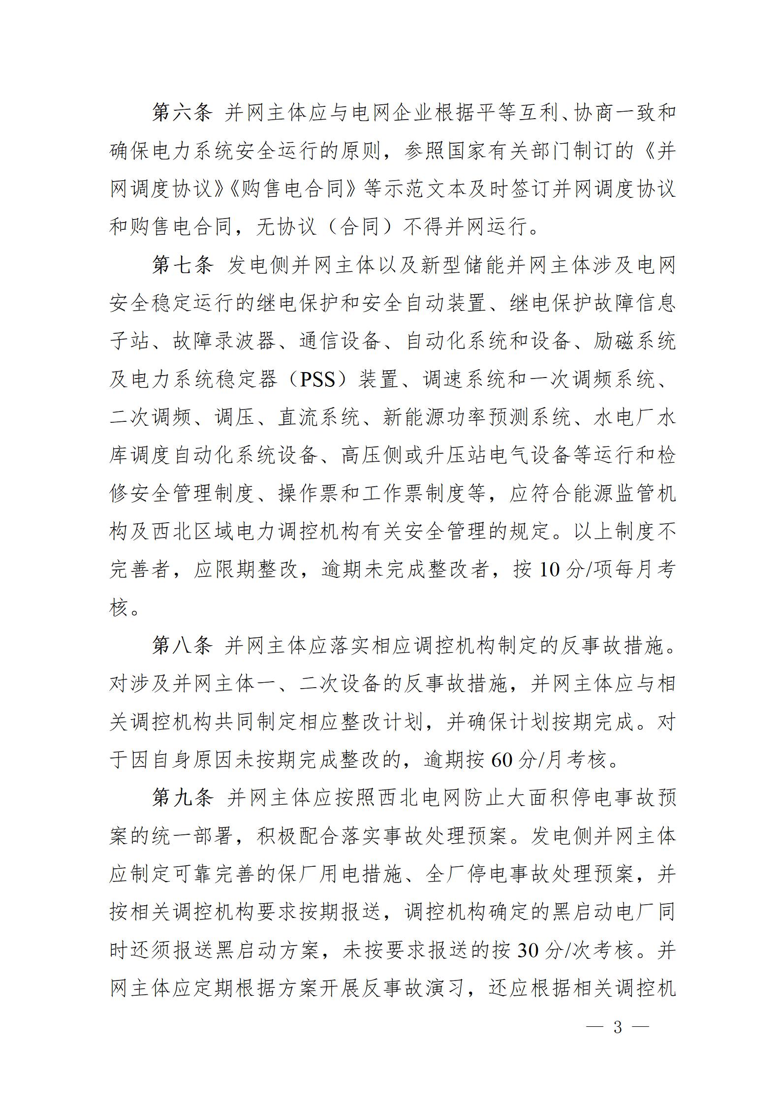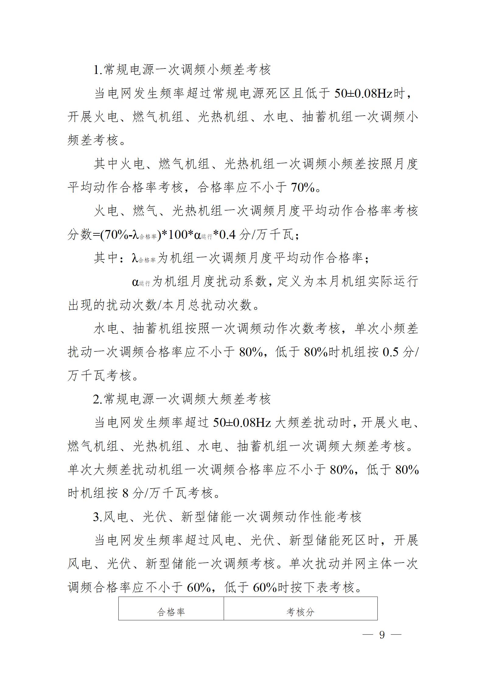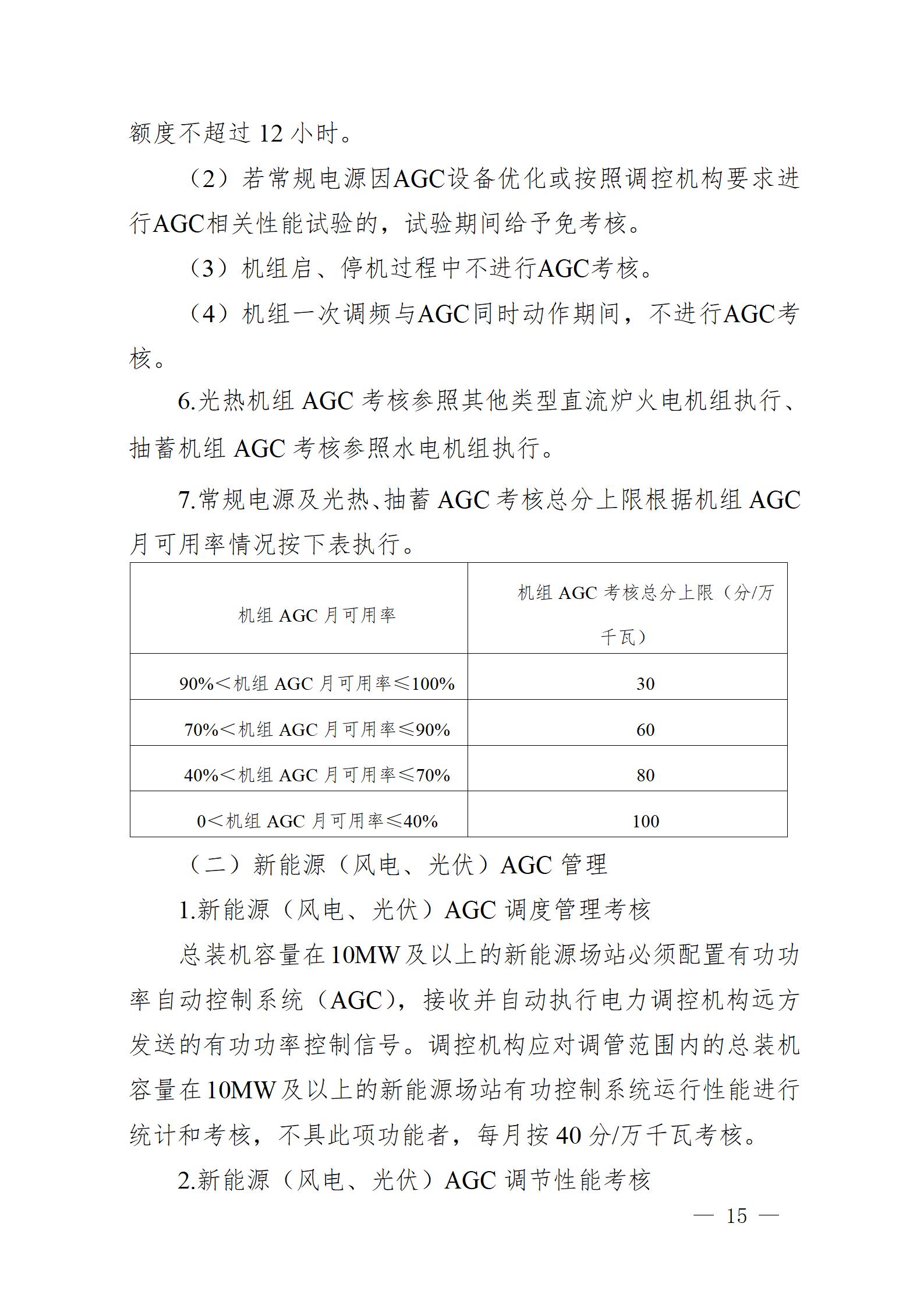 5月16日,西北能監(jiān)辦發(fā)布西北區(qū)域“兩個細則”征求意見稿。新建常規(guī)發(fā)電機組、新型儲能等并網(wǎng)主體通過整套啟動試運后納入本細則管理,新建新能源場站通過首次帶電啟動試運后納入本細則管理。全部并網(wǎng)運行管理考核費用、發(fā)電機組調(diào)試運行期差額資金的50%、符合國家有關(guān)法律法規(guī)規(guī)定的其他資金。上述費用減去輔助服務(wù)補償所需總金額的差額部分由各省(區(qū),獨立控)內(nèi)發(fā)電側(cè)并網(wǎng)主體(含抽蓄)、新型儲能按照上網(wǎng)電量的比例進行分攤。輔助服務(wù)補償所需總費用與并網(wǎng)運行管理考核總費用依照并網(wǎng)主體并網(wǎng)考核與輔助服務(wù)補償分值計算,每分對應(yīng)金額均為1000元。 一次調(diào)頻 新型儲能一次調(diào)頻服務(wù)補償按照一次調(diào)頻月度動作積分電量150分/萬千瓦時(15元/kWh)補償。 AGC服務(wù) 新型儲能AGC適用于調(diào)度機構(gòu)直接調(diào)度的容量為6MW/1h及以上的獨立新型儲能電站。 新型儲能并網(wǎng)主體月可用率達到98%以上,每提高1%補償1分/萬千瓦(0.1元/kW)。 新型儲能在AGC指令下,實際最大放電功率加上最大充電功率計算調(diào)節(jié)容量,按0.2分/萬千瓦(0.02元/kW)補償。 新型儲能貢獻電量合格率補償=新型儲能貢獻合格率×3分/萬千瓦(0.3元/kW)。 黑啟動 新能源場站(風電場、光伏電站)及新型儲能電站每月2分/萬千瓦(0.2元/kW),對并網(wǎng)主體的補償最高不超過最高300分/月(30萬元/月)補償。 穩(wěn)控裝置切負荷 區(qū)域穩(wěn)控裝置動作切抽蓄電站抽水負荷、新型儲能等,按每次補償4分/萬千瓦(0.4元/kW)。 對于納入跨區(qū)超特高壓直流或跨省及重要通道安全穩(wěn)定控制系統(tǒng)切負荷范圍、且非直流配套電源的抽蓄電站(抽水負荷)、新型儲能等,若有新增安控裝置,則按照新投運的安全自動裝置套數(shù),一次性給予300分/套(30萬元/套)的補償。若在原有安控裝置進行改造,則按照改造的套數(shù),一次性給予30分/套(3萬元/套)的補償。 附件1:西北區(qū)域電力并網(wǎng)運行管理實施細則(征求意見稿)