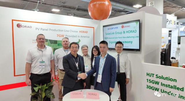當?shù)貢r間2023年9月13日,在美國RE+光伏展會上,宏瑞達與美國本土光伏新貴Solarlink正式簽署了Solarlink在美國內(nèi)華達州基地的 3GW 組件智能制造整線設(shè)備采購協(xié)議。 Solarlink董事長Young Liu與宏瑞達董事長廖滿元、海外銷售總監(jiān)袁茂霖及雙方團隊共同見證了本次簽約儀式。