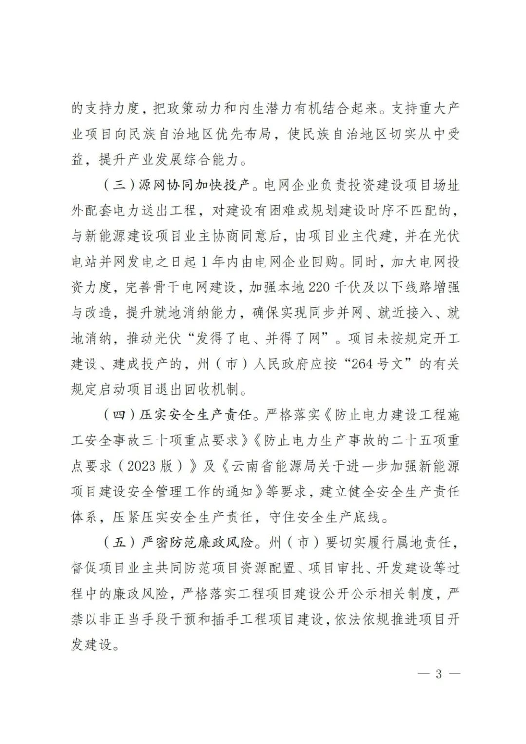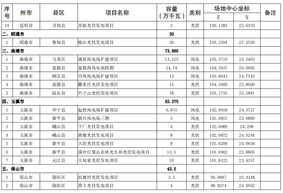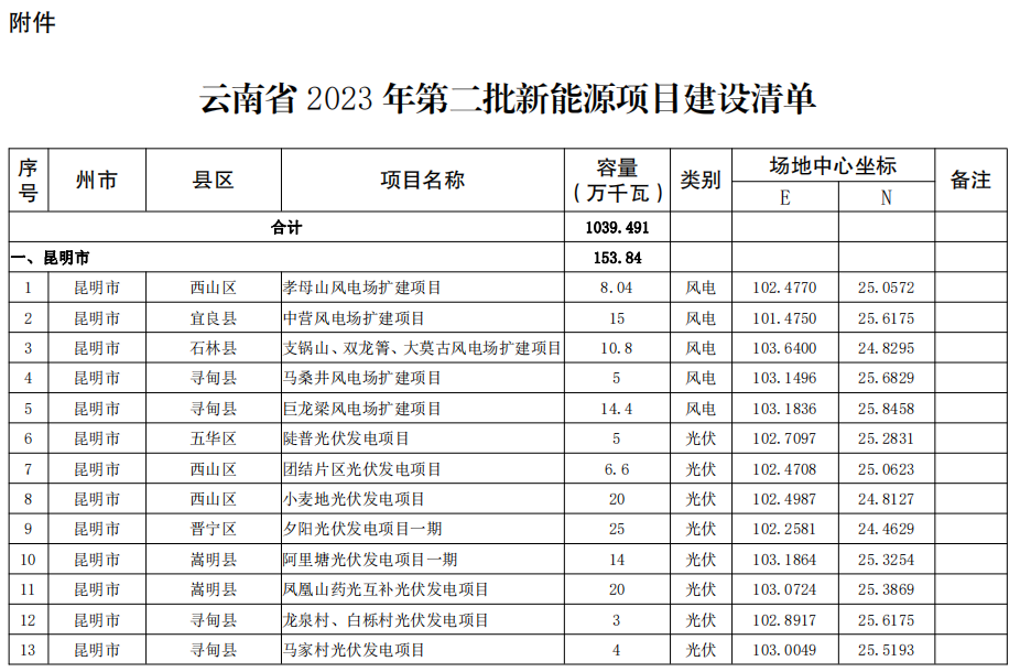 12月20日,云南省發(fā)改委、云南省能源局聯(lián)合印發(fā)《云南省2023年第二批新能源項(xiàng)目開發(fā)建設(shè)方案的通知》,共114個(gè)10.39GW風(fēng)、光項(xiàng)目納入第二批新能源項(xiàng)目開發(fā)建設(shè)方案。其中,光伏91個(gè),規(guī)模為7.3GW;風(fēng)電23個(gè),規(guī)模3.1GW。 根據(jù)文件,有關(guān)州(市)和部門應(yīng)嚴(yán)格執(zhí)行相關(guān)文件,貫徹落實(shí)全國(guó)統(tǒng)一大市場(chǎng)的有關(guān)要求,營(yíng)造良好營(yíng)商環(huán)境,規(guī)范資源配置,提高服務(wù)水平,加強(qiáng)要素審批,盡快實(shí)現(xiàn)開工,強(qiáng)化調(diào)度監(jiān)測(cè),注重源網(wǎng)協(xié)同,推動(dòng)項(xiàng)目加快建設(shè)、按期投產(chǎn)。 文件指出,加大對(duì)民族自治地區(qū)、邊疆地區(qū)的支持力度,支持重大產(chǎn)業(yè)項(xiàng)目向民族自治地區(qū)優(yōu)先布局。此外,電網(wǎng)企業(yè)負(fù)責(zé)投資建設(shè)項(xiàng)目場(chǎng)址外配套電力送出工程,對(duì)建設(shè)有困難或規(guī)劃建設(shè)時(shí)序不匹配的,由項(xiàng)目業(yè)主代建,并在光伏電站并網(wǎng)發(fā)電之日起1年內(nèi)由電網(wǎng)企業(yè)回購(gòu)。 原文見下: