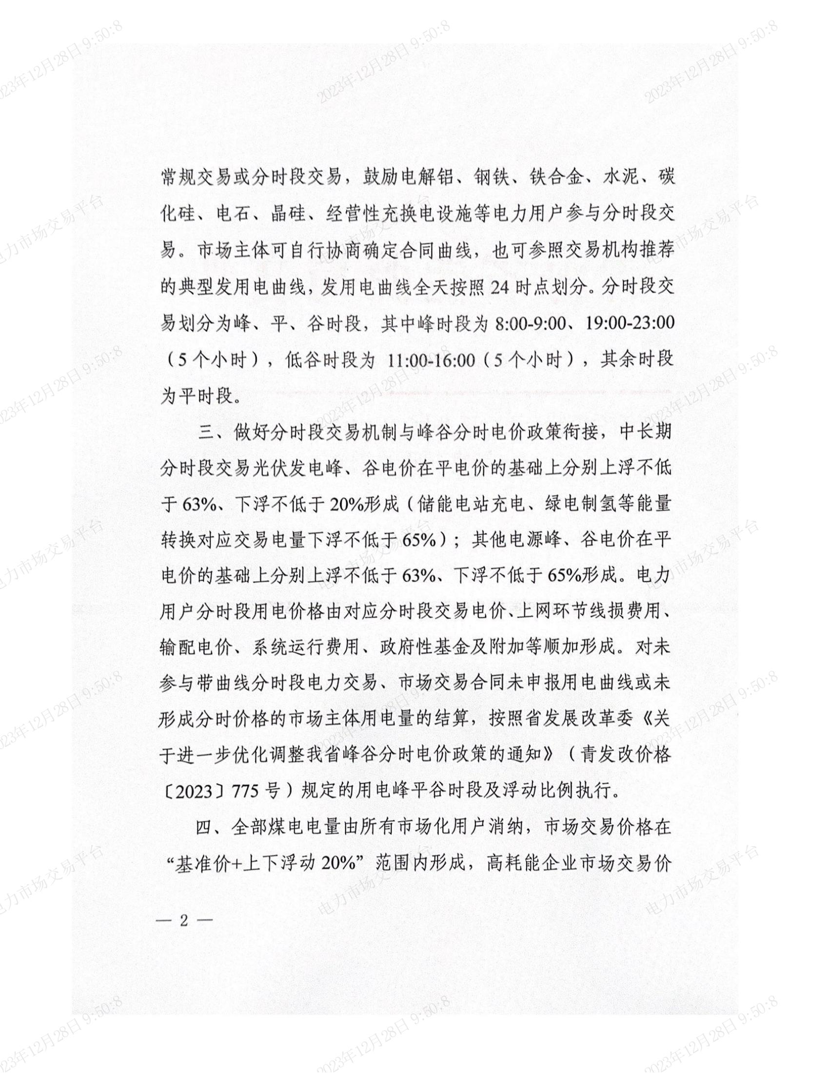 青海:中長期分時段交易光伏峰谷電價上浮不低于63%、下浮不低于20%2023-12-28 17:52來源:gessey瀏覽數:258次