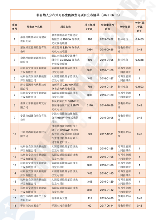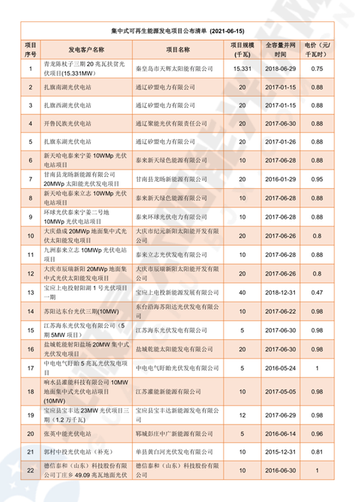 日前,國家電網(wǎng)公布了2021年第十一批可再生能源發(fā)電補貼項目清單,其中集中式和分布式光伏項目數(shù)量分別為33個、226個,核準/備案容量分別為804兆瓦、126. 54兆瓦。 關于公布2021年第十一批可再生能源發(fā)電補貼項目清單的公告 根據(jù)《財政部 國家發(fā)展改革委 國家能源局關于促進非水可再生能源發(fā)電健康發(fā)展的若干意見》(財建〔2020〕4號)、《財政部 國家發(fā)展改革委 國家能源局關于印發(fā)<可再生能源電價附加資金管理辦法>的通知》(財建〔2020〕5號)、《財政部辦公廳關于開展可再生能源發(fā)電補貼項目清單審核有關工作的通知》(財辦建〔2020〕6號)和《財政部辦公廳關于加快推進可再生能源發(fā)電補貼項目清單審核有關工作的通知》(財辦建〔2020〕70號)等有關規(guī)定,國家電網(wǎng)有限公司積極配合各省級能源主管部門和國家可再生能源信息管理中心,為符合中央財政補助條件的可再生能源發(fā)電項目提供補貼清單申報服務。 2021年6月15日,我公司已將完成公示的2021年第十一批可再生能源發(fā)電項目補貼項目清單上報國家主管部門,第十一批項目清單及后續(xù)項目審核進展情況,請登錄新能源云平臺查詢。 國家電網(wǎng)有限公司 2021年6月15日
