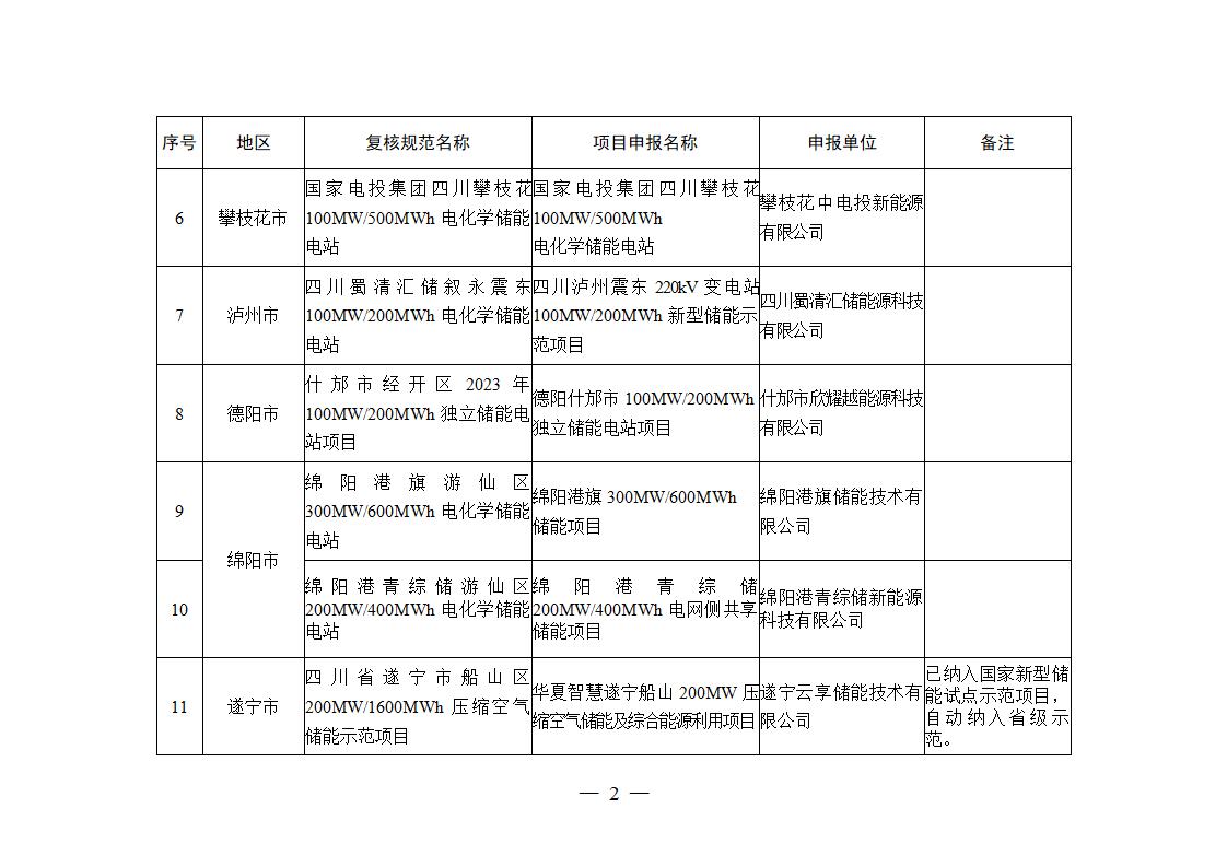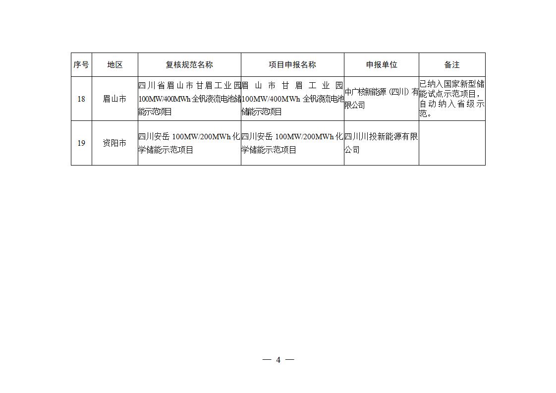 原文如下: 四川省發(fā)展和改革委員會 四川省能源局關于公示擬納入四川省首批新型儲能示范項目名單的通知 為充分發(fā)揮示范引領帶動作用,推動新型儲能多元化高質量發(fā)展,省發(fā)展改革委(省能源局)組織開展了新型儲能示范項目申報和評選工作。根據(jù)項目單位申報,省發(fā)展改革委(省能源局)委托第三方評估機構組織專家評審,并公示征求各方面意見,擬將“四川潤儲匯能彭州永定橋100MW/200MWh電化學儲能電站”等19個項目列為首批新型儲能試點示范項目,現(xiàn)予以公示。 公示期間,任何單位或個人可對公示內容提出書面異議。異議材料應注明真實姓名和聯(lián)系方式,提出異議的單位或個人應對異議材料的真實性和可靠性負責。對匿名或無具體事實依據(jù)的異議,以及其他不正當要求,不予受理。 公示時間:2024年3月25日—2024年3月31日 聯(lián)系方式:028-86705817 郵箱:27509342@qq.com 附件:擬納入四川省首批新型儲能示范項目公示名單 四川省發(fā)展和改革委員會 四川省能源局 2024年3月24日 附件 擬納入四川省首批新型儲能示范項目公示名單