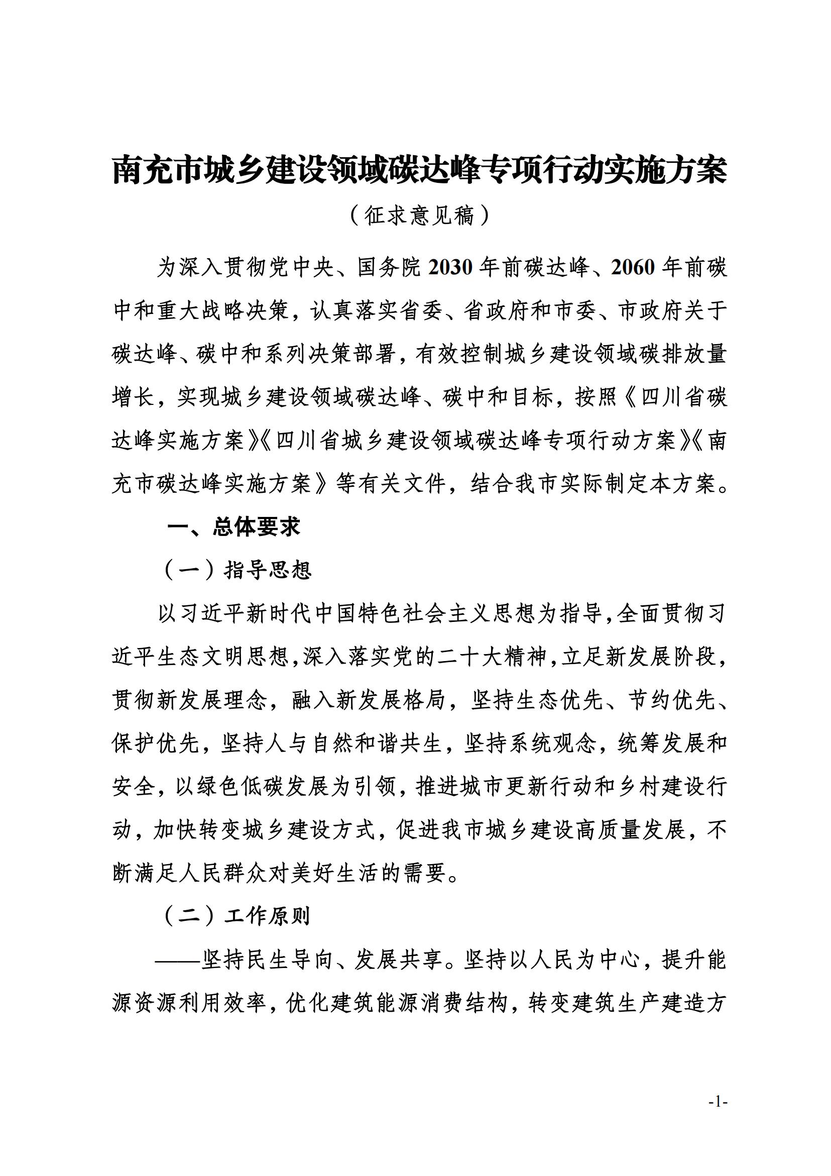 4月15日,南充市住房和城鄉(xiāng)建設(shè)局發(fā)布關(guān)于公開征求《南充市城鄉(xiāng)建設(shè)領(lǐng)域碳達(dá)峰專項(xiàng)行動(dòng)實(shí)施方案(征求意見稿)》意見建議的通知,通知指出,提高建筑可再生能源應(yīng)用比例。鼓勵(lì)產(chǎn)業(yè)園區(qū)、大型建筑實(shí)施光伏建筑一體化。支持發(fā)展分布式光伏。擴(kuò)大光伏在城市公共空間照明、景觀照明等方面應(yīng)用。因地制宜發(fā)展生物質(zhì)能供暖, 積極推廣太陽能光熱建筑應(yīng)用。推進(jìn)營山、南部等地?zé)豳Y源勘探 開發(fā),因地制宜開展地?zé)豳Y源綜合利用,推廣空氣源等各類電動(dòng)熱泵技術(shù)。到2025年城鎮(zhèn)建筑可再生能源替代率達(dá)到 8%,新建公共機(jī)構(gòu)建筑、新建廠房屋頂光伏覆蓋率力爭(zhēng)達(dá)到25%。推 動(dòng)建筑熱源端低碳化,綜合利用熱電聯(lián)產(chǎn)余熱、工業(yè)余熱,根據(jù)實(shí)際情況應(yīng)用盡用。 原文如下: 為深入貫徹黨中央、國務(wù)院2030年前碳達(dá)峰、2060年前碳中和重大戰(zhàn)略決策,認(rèn)真落實(shí)省委、省政府和市委、市政府關(guān)于碳達(dá)峰、碳中和系列決策部署,有效控制城鄉(xiāng)建設(shè)領(lǐng)域碳排放量增長,實(shí)現(xiàn)城鄉(xiāng)建設(shè)領(lǐng)域碳達(dá)峰、碳中和目標(biāo),南充市住房和城鄉(xiāng)建設(shè)局局會(huì)同市發(fā)改委、市自然資源和規(guī)劃局起草了《南充市城鄉(xiāng)建設(shè)領(lǐng)域碳達(dá)峰專項(xiàng)行動(dòng)實(shí)施方案(征求意見稿)》。 按照《四川省行政規(guī)范性文件管理辦法》要求,現(xiàn)面向社會(huì)公開征求意見建議,歡迎各機(jī)關(guān)團(tuán)體、企事業(yè)單位和個(gè)人提出寶貴的意見建議。征求意見時(shí)間為2024年4月15日至5月15日。 聯(lián)系地址:南充市順慶區(qū)萬年東路1號(hào)(市住房和城鄉(xiāng)建設(shè)局) 聯(lián)系電話:0817-2666353 郵箱:631845633@qq.com; 附件:《南充市城鄉(xiāng)建設(shè)領(lǐng)域碳達(dá)峰專項(xiàng)行動(dòng)實(shí)施方案(征求意見稿)》 南充市住房和城鄉(xiāng)建設(shè)局 2024年4月15日