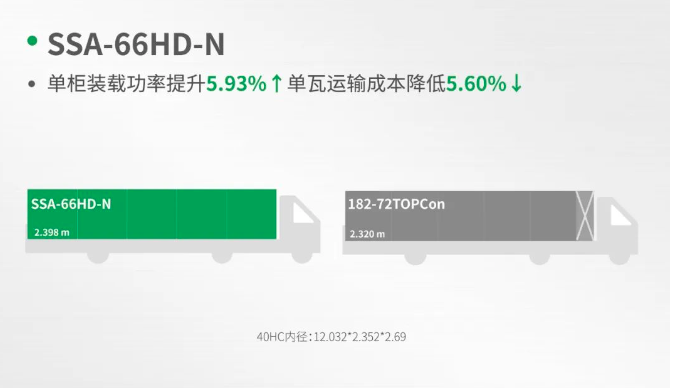 在取與舍的抉擇中,中潤(rùn)光能展現(xiàn)了清晰的戰(zhàn)略眼光與堅(jiān)定的執(zhí)行力度。公司聚焦新產(chǎn)品的降本增效優(yōu)勢(shì),對(duì)傳統(tǒng)182-72版型組件進(jìn)行了精心的設(shè)計(jì)優(yōu)化。在組件功率上,SSA-66HD-N組件功率可比普通的182-72 TOPCon雙玻組件高35W以上。