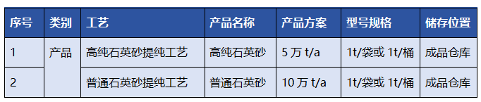 項(xiàng)目產(chǎn)品質(zhì)量標(biāo)準(zhǔn) 根據(jù)設(shè)計(jì)方案,擬建項(xiàng)目擬建項(xiàng)目設(shè)計(jì)1條高純石英砂提純生產(chǎn)線、1條普通石英砂提純生產(chǎn)線。高純石英砂提純生產(chǎn)線,主要包括破碎選礦、制砂磁選、一級(jí)酸洗、一級(jí)浮選、高溫焙燒提純、二級(jí)酸洗、級(jí)浮選、氯化處理等工序;普通石英砂提純生產(chǎn)線,主要包括破碎選礦、制砂磁選、酸洗、干燥等工序。 普通石英砂生產(chǎn)線的破碎選礦、制砂磁選工序與高純石英砂破碎選礦、制砂磁選工序共用部分生產(chǎn)設(shè)備。在高純石英石和普通石英石破碎選礦、制砂磁選后分別對(duì)共用設(shè)備進(jìn)行空氣清洗,再進(jìn)行生產(chǎn)。
