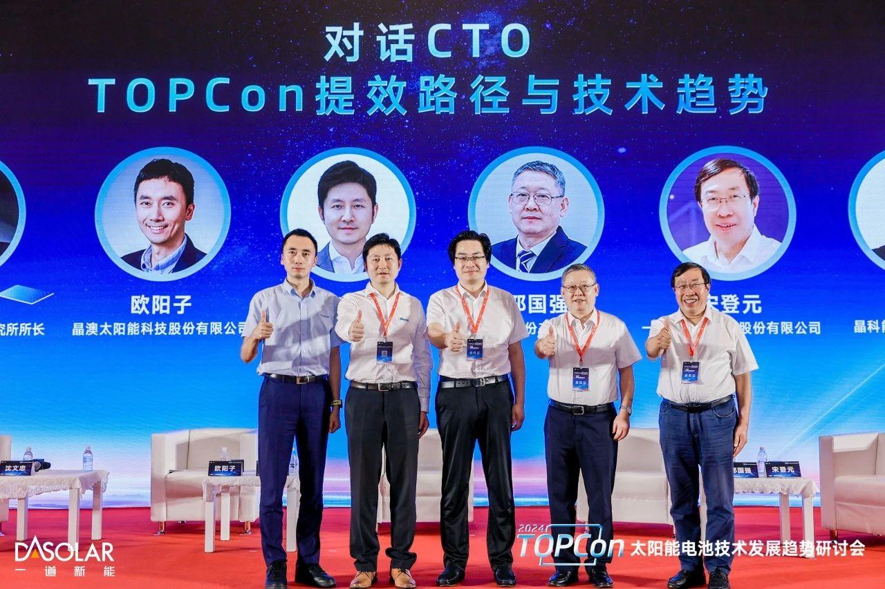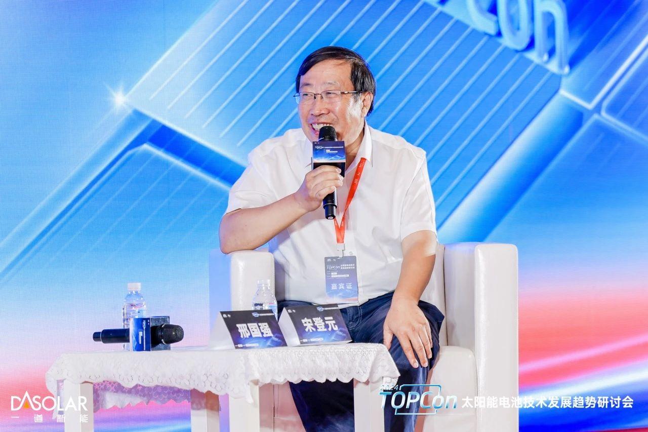 2024年8月16日,中國(guó)光伏行業(yè)協(xié)會(huì)主辦的“2024 TOPCon太陽(yáng)能電池技術(shù)發(fā)展趨勢(shì)研討會(huì)”在上海召開,會(huì)議圍繞TOPCon電池技術(shù)發(fā)展趨勢(shì)及路徑、技術(shù)創(chuàng)新及應(yīng)用、實(shí)證發(fā)電數(shù)據(jù)、未來(lái)行業(yè)格局等議題展開深入討論。來(lái)自中國(guó)光伏行業(yè)協(xié)會(huì)的領(lǐng)導(dǎo)、光伏TOP10企業(yè)的CTO、行業(yè)技術(shù)專家、第三方檢測(cè)機(jī)構(gòu)和設(shè)計(jì)院、媒體機(jī)構(gòu)等200余人出席會(huì)議。一道新能CTO宋登元博士受邀參會(huì),與晶科、晶澳、天合、通威的CTO們共同作為《TOPCon提效路徑與技術(shù)趨勢(shì)》圓桌對(duì)話嘉賓,對(duì)話由上海市太陽(yáng)能學(xué)會(huì)名譽(yù)理事長(zhǎng)、上海交通大學(xué)太陽(yáng)能研究所所長(zhǎng)沈文忠教授主持,以下為宋登元博士對(duì)話環(huán)節(jié)發(fā)言的內(nèi)容摘要。
