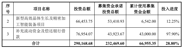 據(jù)悉,天通股份2022年非公開(kāi)發(fā)行股票236,868,686股,發(fā)行價(jià)格為9.90元/股,募集資金金額為人民幣2,344,999,991.40元,扣除不含稅各項(xiàng)發(fā)行費(fèi)用人民幣20,304,037.02元,實(shí)際募集資金凈額為人民幣2,324,695,954.38元。截至2024年6月30日,公司非公開(kāi)發(fā)行股票募投項(xiàng)目的資金使用情況如下:
