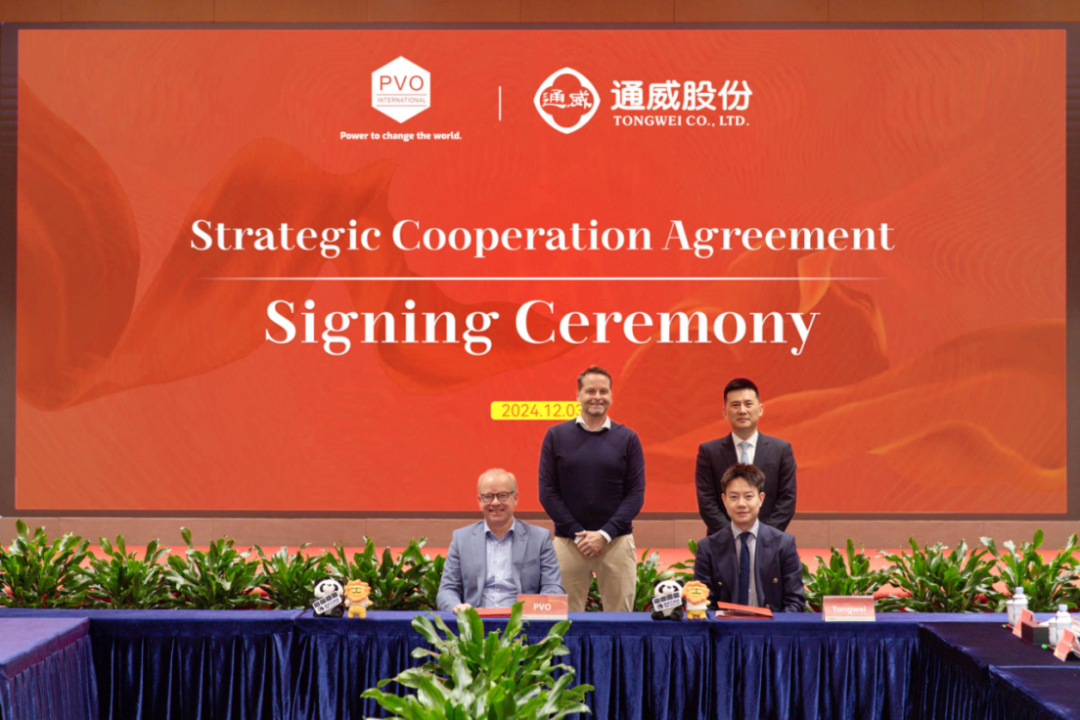 12月3日,PVO International B.V.(以下簡(jiǎn)稱PVO)一行到訪通威,簽署了合作備忘錄(MOU),并達(dá)成高效光伏組件的三方項(xiàng)目供貨協(xié)議,共同見(jiàn)證了合作新里程的正式開(kāi)啟。