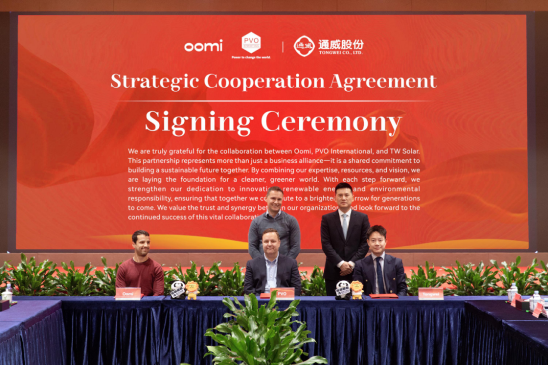 通威與PVO簽署2025年350MW合作備忘錄(MOU) 薛青松副總經(jīng)理表示:“自2022年與PVO結(jié)緣以來(lái),我們的合作從光伏組件的單一供應(yīng),逐漸深化為全面的戰(zhàn)略合作伙伴關(guān)系。憑借PVO在西北歐市場(chǎng)強(qiáng)大的分銷網(wǎng)絡(luò),以及通威在研發(fā)和生產(chǎn)上的卓越實(shí)力,我們有信心在未來(lái)幾年內(nèi),共同在歐洲市場(chǎng)掀起一場(chǎng)綠色能源革命,推動(dòng)全球能源轉(zhuǎn)型的巨輪破浪前行。” Erwin Damen同樣對(duì)合作前景滿懷憧憬:“與通威攜手,不僅讓我們?cè)谖鞅睔W市場(chǎng)的份額穩(wěn)步增長(zhǎng),更讓我們成為了推動(dòng)可持續(xù)能源發(fā)展的中堅(jiān)力量。此次參觀通威,我們深刻感受到通威技術(shù)創(chuàng)新和全球戰(zhàn)略的前瞻性。我們期待與通威在更多領(lǐng)域展開(kāi)深度合作,共同描繪西北歐綠色能源的美好未來(lái)。” 會(huì)期,通威、PVO與Oomi Solar三方達(dá)成高效光伏組件供貨協(xié)議,進(jìn)一步拓寬了合作邊界。通威股份光伏商務(wù)部組件營(yíng)銷副總經(jīng)理薛青松、PVO首席采購(gòu)官Erwin Damen見(jiàn)證簽約,PVO客戶經(jīng)理Jukka Vihko、Oomi Solar業(yè)務(wù)總監(jiān)Arttu Raitala、通威股份光伏商務(wù)部組件營(yíng)銷亞太、歐洲及中東非區(qū)負(fù)責(zé)人陳方舟代表三方共同簽署協(xié)議。