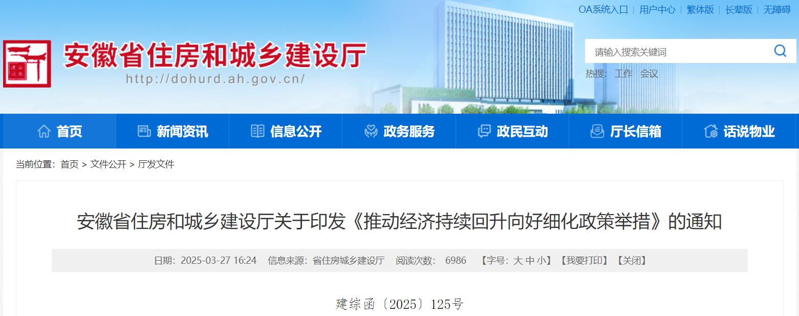 原文如下: 安徽省住房和城鄉(xiāng)建設(shè)廳關(guān)于印發(fā)《推動經(jīng)濟(jì)持續(xù)回升向好細(xì)化政策舉措》的通知 建綜函〔2025〕125號 各市住房城鄉(xiāng)建設(shè)局(城鄉(xiāng)建設(shè)局),合肥市住房保障和房產(chǎn)管理局、林業(yè)和園林局、水務(wù)局,阜陽市房屋管理局,亳州市住房發(fā)展中心,宿州市房產(chǎn)管理服務(wù)中心,廣德市、宿松縣住房城鄉(xiāng)建設(shè)局,廳機(jī)關(guān)各處室(局)、廳直各單位: 現(xiàn)將《推動經(jīng)濟(jì)持續(xù)回升向好細(xì)化政策舉措》印發(fā)給你們,請結(jié)合實(shí)際,認(rèn)真抓好貫徹落實(shí)。 2025年3月26日 (此件公開發(fā)布) 推動經(jīng)濟(jì)持續(xù)回升向好細(xì)化政策舉措 為貫徹落實(shí)《安徽省人民政府印發(fā)〈關(guān)于推動經(jīng)濟(jì)持續(xù)回升向好若干政策舉措〉的通知》(皖政〔2025〕14號)要求,穩(wěn)定預(yù)期、激發(fā)活力,推動經(jīng)濟(jì)持續(xù)回升向好,現(xiàn)結(jié)合住房城鄉(xiāng)建設(shè)領(lǐng)域?qū)嶋H,提出以下細(xì)化政策舉措。 一、提振住房消費(fèi),促進(jìn)房地產(chǎn)市場止跌回穩(wěn) 1.加大商品房促銷力度。全面取消住房限制性措施,嚴(yán)格落實(shí)住房消費(fèi)稅收優(yōu)惠政策,鼓勵各市推出階段性購房補(bǔ)貼、購房消費(fèi)券、“以舊換新”等促銷政策,按季開展“線上+線下”商品房展銷活動。擴(kuò)大住房公積金提取范圍,實(shí)施差異化購房信貸支持政策,全面放開異地貸款、“商轉(zhuǎn)公”。制定完善相關(guān)標(biāo)準(zhǔn),配合自然資源部門優(yōu)化住宅用地容積率、建筑密度、建筑高度等規(guī)劃條件,引導(dǎo)房地產(chǎn)開發(fā)企業(yè)建設(shè)“好房子”,開展保障性住房“好房子”建設(shè)試點(diǎn)。強(qiáng)化省級政策指導(dǎo),編制房地產(chǎn)政策“白皮書”,加強(qiáng)正面宣傳引導(dǎo),穩(wěn)定市場預(yù)期。 2.推進(jìn)存量商品房去庫存。停止新建安置房,大力推行“房票”等貨幣化安置方式,鼓勵各地加大“房票”優(yōu)惠力度和覆蓋范圍。有序推進(jìn)收購存量商品房用作保障性住房,建立住房保障輪候庫,支持有條件的城市探索收購存量商品房用作“租購?fù)墶比瞬抛》?,以及教育、醫(yī)療、養(yǎng)老、文化等社會事業(yè)發(fā)展用房。加力爭取專項(xiàng)借款、專項(xiàng)債券等政策,支持城中村和城市危舊房改造??茖W(xué)編制住房發(fā)展規(guī)劃和年度計(jì)劃,推動供需匹配、供需均衡。 3.推動“白名單”項(xiàng)目擴(kuò)圍增效。動態(tài)梳理項(xiàng)目融資需求,分批將存量住房開發(fā)貸款項(xiàng)目通過備案流程納入“白名單”,常態(tài)化做好新增住房開發(fā)貸款項(xiàng)目納入“白名單”工作,推動暫不符合貸款條件項(xiàng)目的相關(guān)問題修復(fù),保障合規(guī)房地產(chǎn)項(xiàng)目合理融資需求,力爭全省“白名單”授信總規(guī)模保持在1700億元以上。扎實(shí)做好“保交房”收尾工作,堅(jiān)決守住不發(fā)生系統(tǒng)性風(fēng)險底線。 二、實(shí)施城市更新,持續(xù)擴(kuò)大行業(yè)領(lǐng)域有效投資 4.建立健全可持續(xù)的城市更新機(jī)制。以需求為導(dǎo)向,以項(xiàng)目為牽引,一體推進(jìn)城市體檢和城市更新。加快編制城市更新專項(xiàng)規(guī)劃,建立完善規(guī)劃實(shí)施體系。支持組建城市功能品質(zhì)活力提升促進(jìn)聯(lián)盟,培育招引一批城市綜合運(yùn)營服務(wù)商,打造專業(yè)化城市更新實(shí)施主體。探索“策劃+融資+運(yùn)營”“設(shè)計(jì)+采購+施工+運(yùn)營”等模式,推動城市片區(qū)化更新和項(xiàng)目建設(shè),指導(dǎo)合肥市推進(jìn)全國城市更新行動示范城市建設(shè)。配合發(fā)展改革部門完善城市基礎(chǔ)設(shè)施服務(wù)費(fèi)價政策,優(yōu)化特許經(jīng)營權(quán)出讓方式,健全合理回報機(jī)制。 5.推進(jìn)城市更新項(xiàng)目實(shí)施。扎實(shí)開展“重大項(xiàng)目前期工作攻堅(jiān)年”行動,加大城市“五管一廊”、城鎮(zhèn)老舊小區(qū)改造等重大項(xiàng)目謀劃,建立住建領(lǐng)域項(xiàng)目儲備庫,積極爭取中央預(yù)算內(nèi)投資、超長期特別國債等政策資金支持。繼續(xù)用好“城品活力貸”,支持城市功能品質(zhì)活力提升重點(diǎn)領(lǐng)域建設(shè),給予相關(guān)項(xiàng)目貸款1%的財政貼息。推進(jìn)智能化市政基礎(chǔ)設(shè)施建設(shè)和改造,支持各地打造一批新型城市基礎(chǔ)設(shè)施建設(shè)標(biāo)桿應(yīng)用場景。加快城市生命線安全工程(二期)建設(shè),推動應(yīng)用場景向水環(huán)境、燃?xì)庥脩艚K端等領(lǐng)域拓展,實(shí)現(xiàn)全省城市生命線安全工程監(jiān)測全覆蓋。指導(dǎo)蕪湖市、六安市系統(tǒng)化全域推進(jìn)國家海綿城市示范城市建設(shè),因地制宜推進(jìn)地下綜合管廊建設(shè)。 三、加快轉(zhuǎn)型發(fā)展,推動建筑業(yè)提質(zhì)擴(kuò)量增效 6.提升建筑業(yè)市場競爭力。建立特級資質(zhì)企業(yè)培育庫,加大高等級資質(zhì)建筑業(yè)企業(yè)培育扶持力度,重點(diǎn)培育一批公路、水利、水電、港口與航道、電力等高等級資質(zhì)企業(yè)。支持中小企業(yè)采取聯(lián)合體方式參與