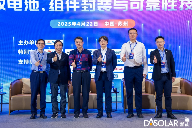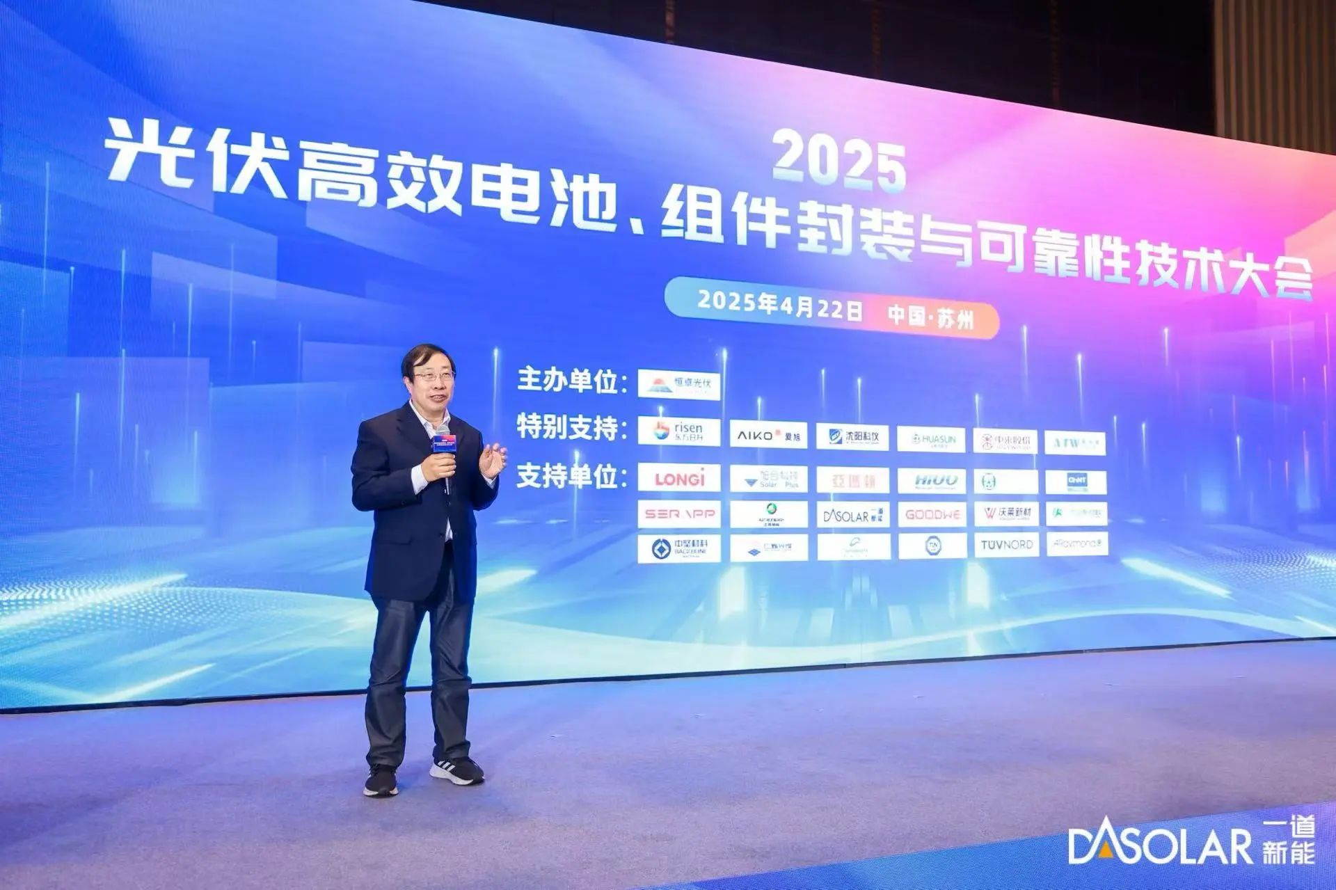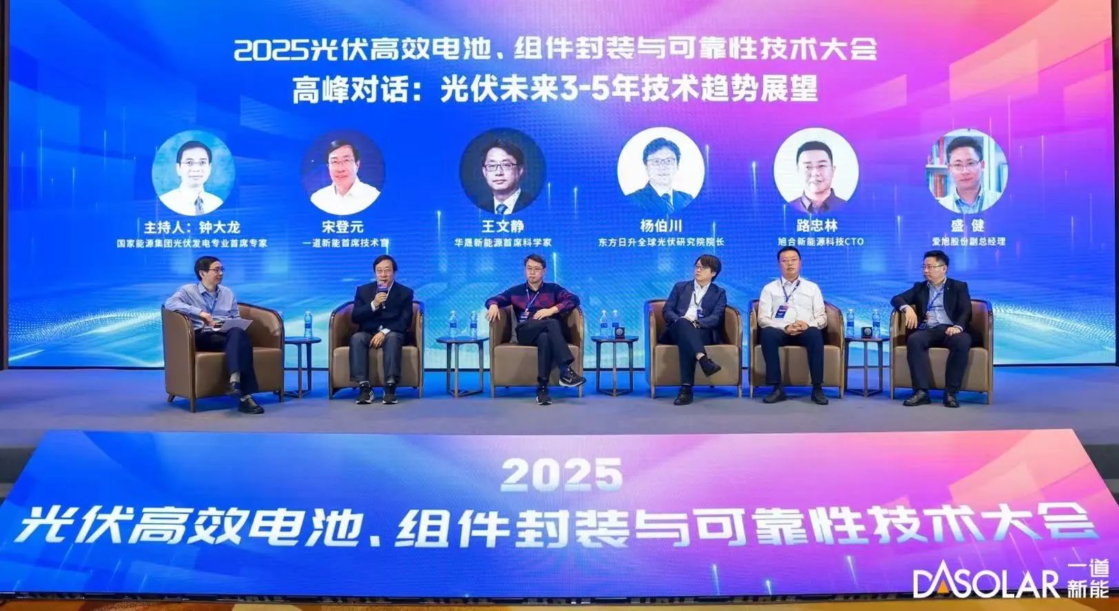 2025年4月22日,《光伏高效電池組件封裝與可靠性技術大會》在蘇州隆重召開。大會匯聚了光伏產(chǎn)業(yè)鏈上下游眾多技術領軍人物、檢測測試機構、投資機構、行業(yè)組織及高等院校代表等200余人參會。一道新能CTO宋登元博士受邀出席,并主持了TOPCon、HJT、XBC和鈣鈦礦技術的主旨報告環(huán)節(jié)。同時參加了“光伏未來3-5年技術趨勢展望”的高峰對話,專家們就 TOPCon、HJT、XBC和鈣鈦礦技術的現(xiàn)狀及未來發(fā)展趨勢進行了預判和深入研討。一道新能在SiO?/Poly-Si先進鈍化接觸技術的支撐下,最新研發(fā)的TOPCon5.0技術及鈣鈦礦疊層組件重塑了光伏技術天花板,再次成為大會焦點受到普遍關注。