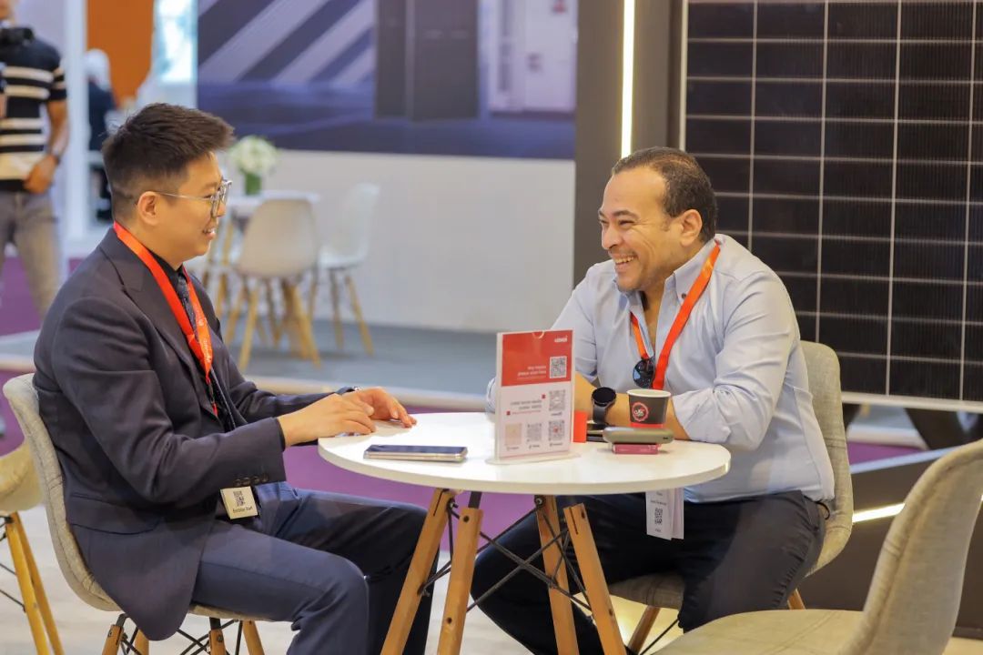 02、攜手伙伴,再簽80MW Hi-MO X10出色的性能及應(yīng)用前景,獲得當(dāng)?shù)鼗锇椤⒖蛻舻臒崆嘘P(guān)注與好評(píng)。展會(huì)期間,隆基與埃及當(dāng)?shù)胤咒N伙伴Egypta Group, Reestech先后簽訂Hi-MO X10組件供貨框架協(xié)議50MW。 緊隨其后,隆基與華為、埃及分銷伙伴Egypta Group以及埃及業(yè)主Mecca共同簽訂30MW項(xiàng)目合作協(xié)議。Mecca是埃及當(dāng)?shù)貥O具影響力的工業(yè)產(chǎn)業(yè)、商業(yè)綜合體地產(chǎn)持有人,這一合作也標(biāo)志著隆基領(lǐng)先的產(chǎn)品解決方案獲得埃及當(dāng)?shù)亟K端市場(chǎng)的高度認(rèn)可,三方將共同推動(dòng)高效光伏組件在埃及的廣泛應(yīng)用。