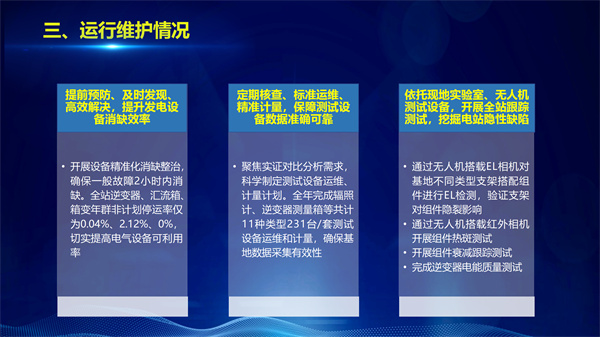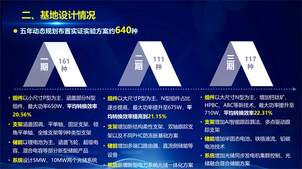 大慶基地于2021年11月啟動運行,2022年1月正式開展實證實驗工作,目前已完成前三期項目建設,總裝機容量增加至50萬千瓦,實證實驗方案達到389種,服務中國乃至全球光伏、儲能產業(yè)健康高質量發(fā)展的作用進一步增強。