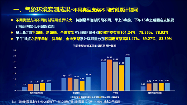 會上,國家電投集團黃河公司大慶公司執(zhí)行董事、總經理汪洋分別從氣象環(huán)境、組件、逆變器、支架、儲能產品、光伏系統(tǒng)、光儲系統(tǒng)七大維度進行了實證實驗數據分享。