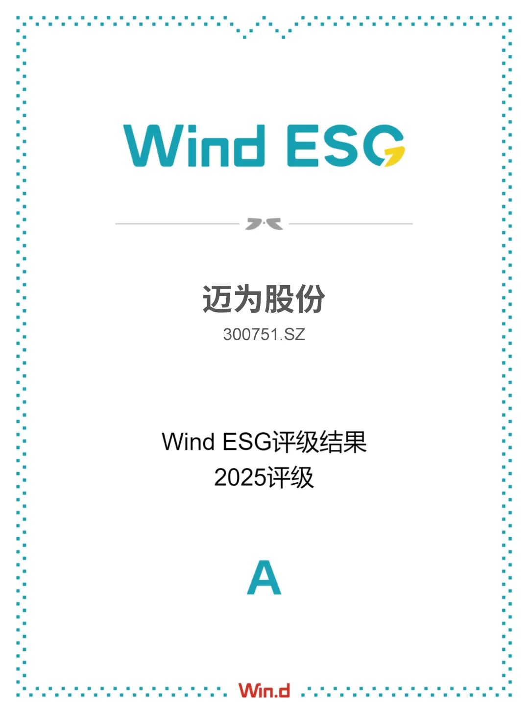 邁為股份Wind ESG評級躍升至A級,可持續(xù)發(fā)展實力強勁2025-06-27 16:22來源:gessey瀏覽數(shù):239次