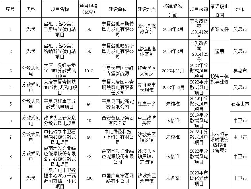 7月17日,寧夏自治區(qū)發(fā)改委發(fā)布關(guān)于廢止一批新能源項(xiàng)目的公告。 根據(jù)公告,此次共有9個(gè)、449.3MW風(fēng)光項(xiàng)目被廢止。 其中,光伏項(xiàng)目3個(gè),總規(guī)模300MW;風(fēng)電項(xiàng)目7個(gè),總規(guī)模149.3MW。 廢止項(xiàng)目的業(yè)主涉及大唐集團(tuán)、寧夏馬斯特實(shí)業(yè)集團(tuán)有限公司、廣西國(guó)能平泰新能源有限公司、水發(fā)綠色能源股份有限公司、西安普優(yōu)斯集團(tuán)有限公司、中國(guó)廣播電視網(wǎng)絡(luò)集團(tuán)有限公司、中國(guó)中化控股有限責(zé)任公司。 詳情見(jiàn)下: 自治區(qū)發(fā)展改革委關(guān)于廢止一批新能源項(xiàng)目的公告 為推動(dòng)我區(qū)新能源項(xiàng)目高效、有序、健康發(fā)展,進(jìn)一步優(yōu)化新能源資源配置,及時(shí)釋放電網(wǎng)接入空間、土地資源等,經(jīng)各市梳理上報(bào),現(xiàn)對(duì)9個(gè)共449.3MW新能源項(xiàng)目予以廢止。有關(guān)項(xiàng)目情況公告如下: 附件:廢止項(xiàng)目清單 寧夏回族自治區(qū)發(fā)展改革委 2025年7月17日 (此件公開(kāi)發(fā)布) 附件:廢止項(xiàng)目清單