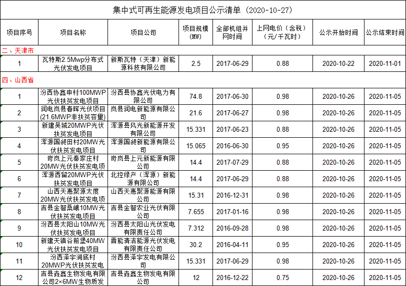 (注:該表格項(xiàng)目包含10月21日至26日已公示光伏項(xiàng)目) 以下為本次公示清單中光伏項(xiàng)目部分: