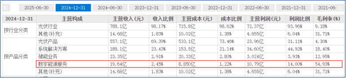 天合富家,是分布式光伏業(yè)務(wù)的主體。 2023年4月天合光能曾發(fā)布公告,宣稱將其分拆上市,天合富家估值一度達(dá)到225億元,成功入選胡潤《2024全球獨(dú)角獸榜》。 整合C端市場(chǎng)需要花費(fèi)巨量人力物力,導(dǎo)致分布式光伏前期資產(chǎn)、資金投入較大,但架不住其盈利能力強(qiáng)。2024年報(bào)顯示,天合光能下游市場(chǎng)數(shù)字能源服務(wù)毛利率高達(dá)54.93%,2025上半年攀升至57.78%。對(duì)比之下,組件產(chǎn)品5%左右的毛利率黯然失色。