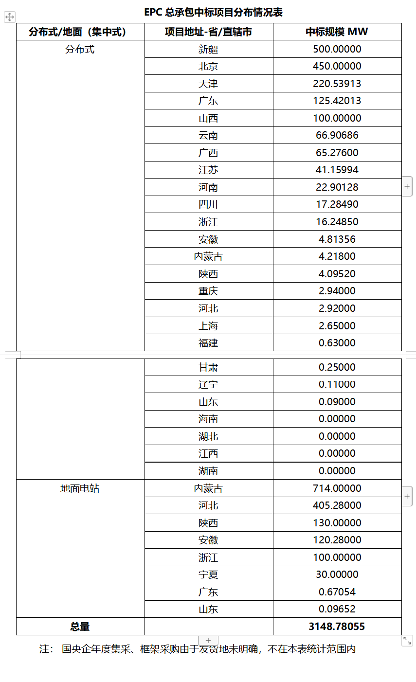 我們統(tǒng)計包含大型央企國企、地方能源集團(tuán)、地方政府機(jī)關(guān)、兩大電網(wǎng)、央企總包企業(yè)、知名光伏企業(yè)等,其中央企總包企業(yè)占總招標(biāo)規(guī)模較高,具體各企業(yè)排名如下表: