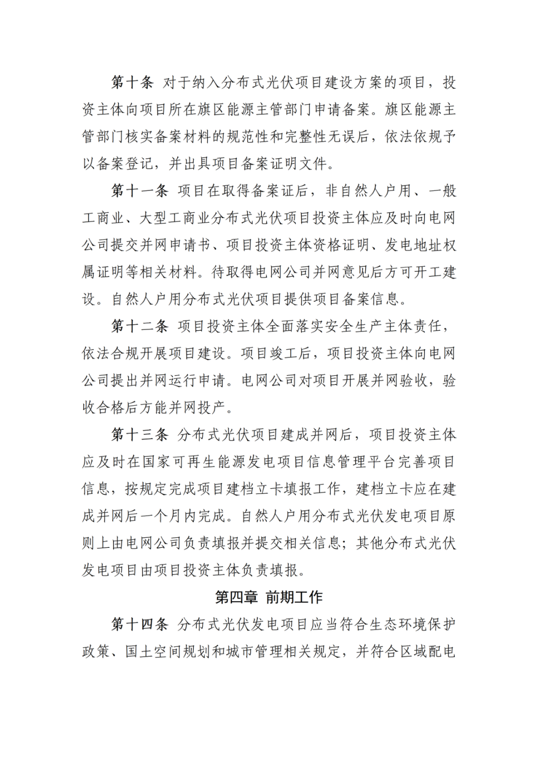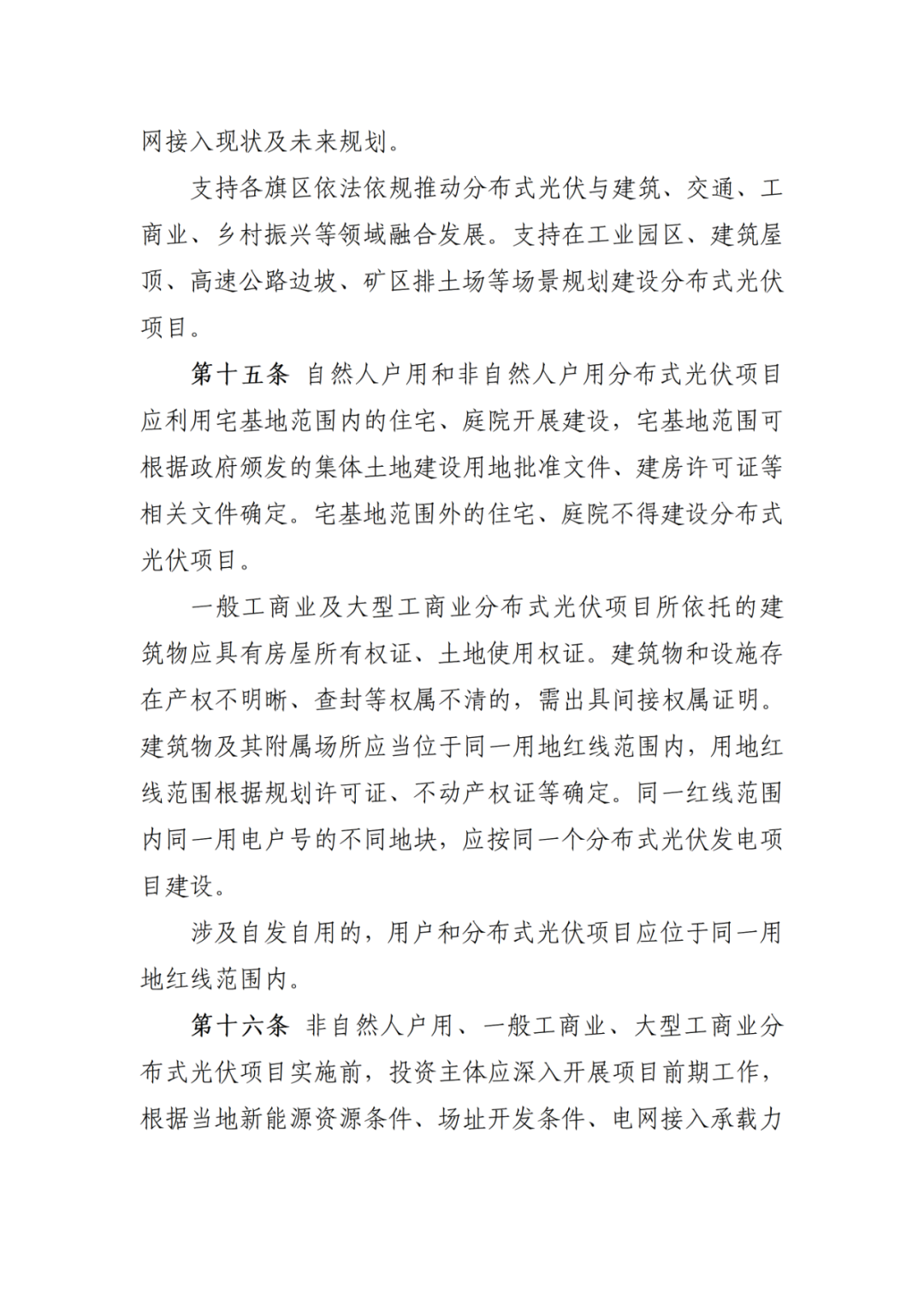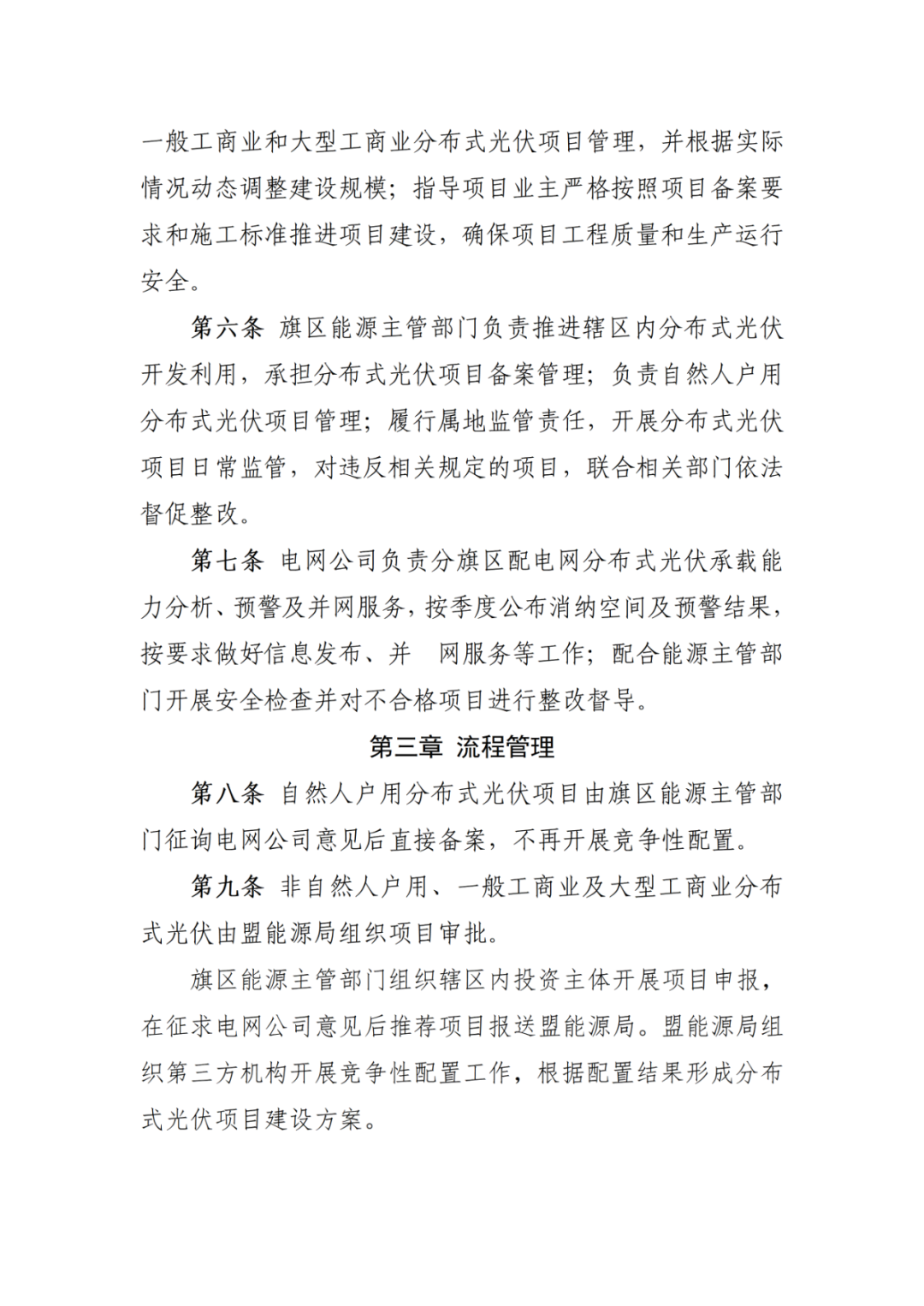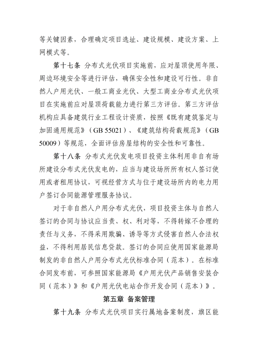 12月15日,阿拉善盟能源局關(guān)于印發(fā)《阿拉善盟分布式光伏發(fā)電項目開發(fā)建設(shè)管理辦法》的通知。 通知對分布式光伏項目行業(yè)管理、流程管理、前期工作、備案管理、電網(wǎng)接入、建設(shè)管理、運行管理等做出詳細(xì)規(guī)定,其中,一般工商業(yè)分布式光伏上網(wǎng)模式可為全部自發(fā)自用或者自發(fā)自用余電上網(wǎng),自發(fā)自用余電上網(wǎng)模式年自發(fā)自用電量占比不低于80%。大型工商業(yè)分布式光伏總裝機容量原則上不超過50兆瓦。 阿拉善盟能源局關(guān)于印發(fā)《阿拉善盟分布式光伏發(fā)電項目開發(fā)建設(shè)管理辦法》的通知 各盟直相關(guān)部門、各旗區(qū)能源主管部門、阿拉善供電公司、各新能源企業(yè): 根據(jù)《國家能源局關(guān)于印發(fā)〈分布式光伏發(fā)電開發(fā)建設(shè)管理辦法〉的通知》(國能發(fā)新能規(guī)〔2025〕7 號)、《內(nèi)蒙古自治區(qū)能源局關(guān)于印發(fā)〈內(nèi)蒙古自治區(qū)分布式光伏項目開發(fā)建設(shè)管理實施細(xì)則〉的通知》(內(nèi)能源發(fā)〔2025〕5 號)、《內(nèi)蒙古自治區(qū)能源局關(guān)于全區(qū)能源領(lǐng)域簡政放權(quán)優(yōu)化程序優(yōu)化服務(wù)的通知》(內(nèi)能源法改字〔2025〕83 號)等政策文件,開展公平競爭審查、合法性審查,并廣泛征求意見,盟能源局制定了《阿拉善盟分布式光伏發(fā)電項目開發(fā)建設(shè)管理辦法》,現(xiàn)公開印發(fā),請各單位及企業(yè)認(rèn)真執(zhí)行。 阿拉善盟能源局 2025年12月15日 附件:阿拉善盟分布式光伏發(fā)電項目開發(fā)建設(shè)管理辦法.docx