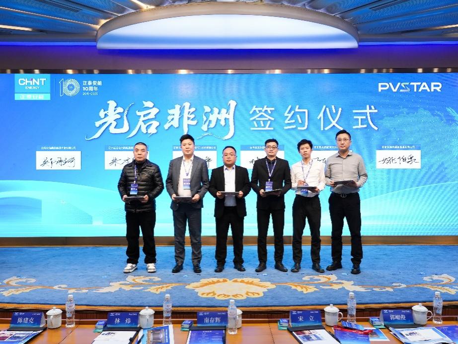 隨后,正泰安能PVSTAR海外事業(yè)部非洲區(qū)負(fù)責(zé)人孫占峰代表公司,與五位代理商代表簽署合作協(xié)議。未來,正泰安能將與合作伙伴同心聚力,共筑非洲大陸的綠色可持續(xù)未來。 正泰安能期待以此次交流會為契機,著力打造多元協(xié)同、開放包容、合作共贏的發(fā)展平臺,做中國合作伙伴出海路上最可靠的同行者,以技術(shù)為舟、以合作為槳、以創(chuàng)新為帆,推動更多“小而美、惠民生”的清潔能源項目落地,為萬千家庭點亮可感可及的美好生活,為共建綠色“一帶一路”、實現(xiàn)全球可持續(xù)發(fā)展目標(biāo)貢獻智慧與力量!