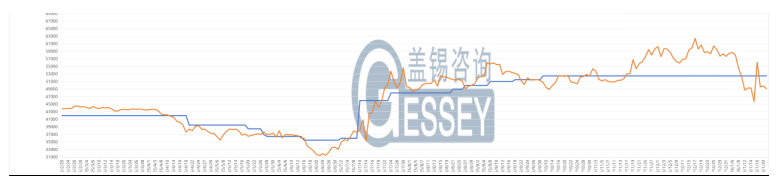 行情走勢:主力合約收盤價為49135元/噸,前結算價為49695元/噸,收盤價較前結算價跌幅為1.13%,收盤價較開盤價跌560元/噸,跌幅為1.13%,成交量為529手,持倉量為4659手。