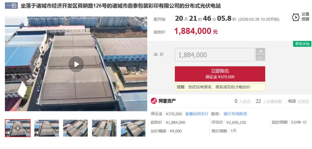 近日從阿里資產(chǎn)獲悉,3座位于山東省諸城市的分布式光伏電站將于2月26日開始拍賣。
