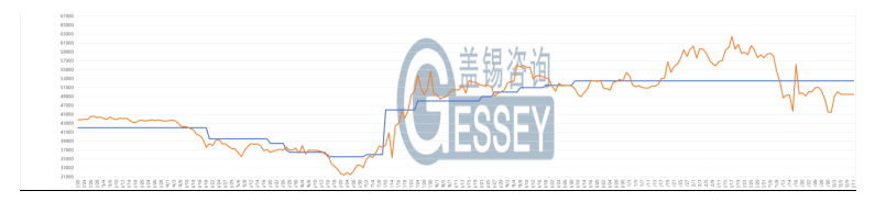 行情走勢:主力合約收盤價為49490元/ 噸,前結(jié)算價為49490元/噸,收盤價較前結(jié)算價跌幅為0.00% ,收盤價較開盤價漲49490元/噸,跌幅為0.00%,成交量為0手,持倉量為0手。