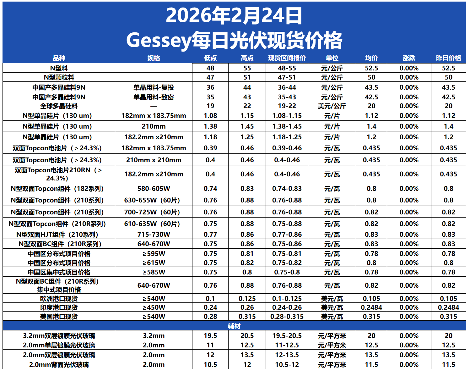 Gessey:2月24日每日光伏市場行情2026-02-24 18:09來源:gessey瀏覽數(shù):358次