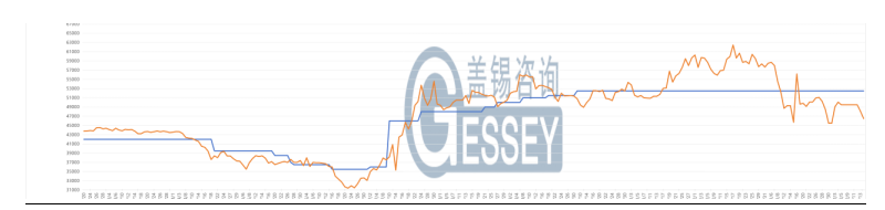 行情走勢:主力合約收盤價為46500元 / 噸,前結(jié)算價為48300元/噸,收盤價較前結(jié)算價跌幅為3.73% ,收盤價較開盤價跌1800元/噸,跌幅為3.73%,成交量為618手,持倉量為4544手。