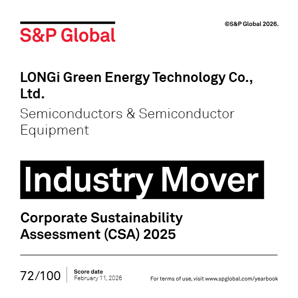 這一成績源于隆基對可持續(xù)發(fā)展理念的堅定踐行:公司以董事會戰(zhàn)略與可持續(xù)發(fā)展委員會為最高治理層,持續(xù)深化“引領(lǐng)、創(chuàng)新、綠色、和諧、信賴”五大支柱的實踐。隆基在標普S&P Global CSA評估中的環(huán)境與治理維度評分大幅提升,尤其在“氣候戰(zhàn)略”“污染物與廢棄物”“生物多樣性”等關(guān)鍵議題上表現(xiàn)突出。