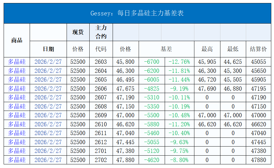 今日硅料價格整體維穩(wěn),N型料主流價格在48-55元/公斤,均價52.5元/公斤。N型顆粒硅主流價格在47-51元/公斤,均價50元/公斤。國產(chǎn)復(fù)投特級硅料主流價格在36-44元/公斤,均價43.5元/公斤,國產(chǎn)致密特級硅料主流價格在35-43元/公斤,均價42.5元/公斤。全球多晶硅料主流價格在19-22元/公斤,均價20元/公斤。