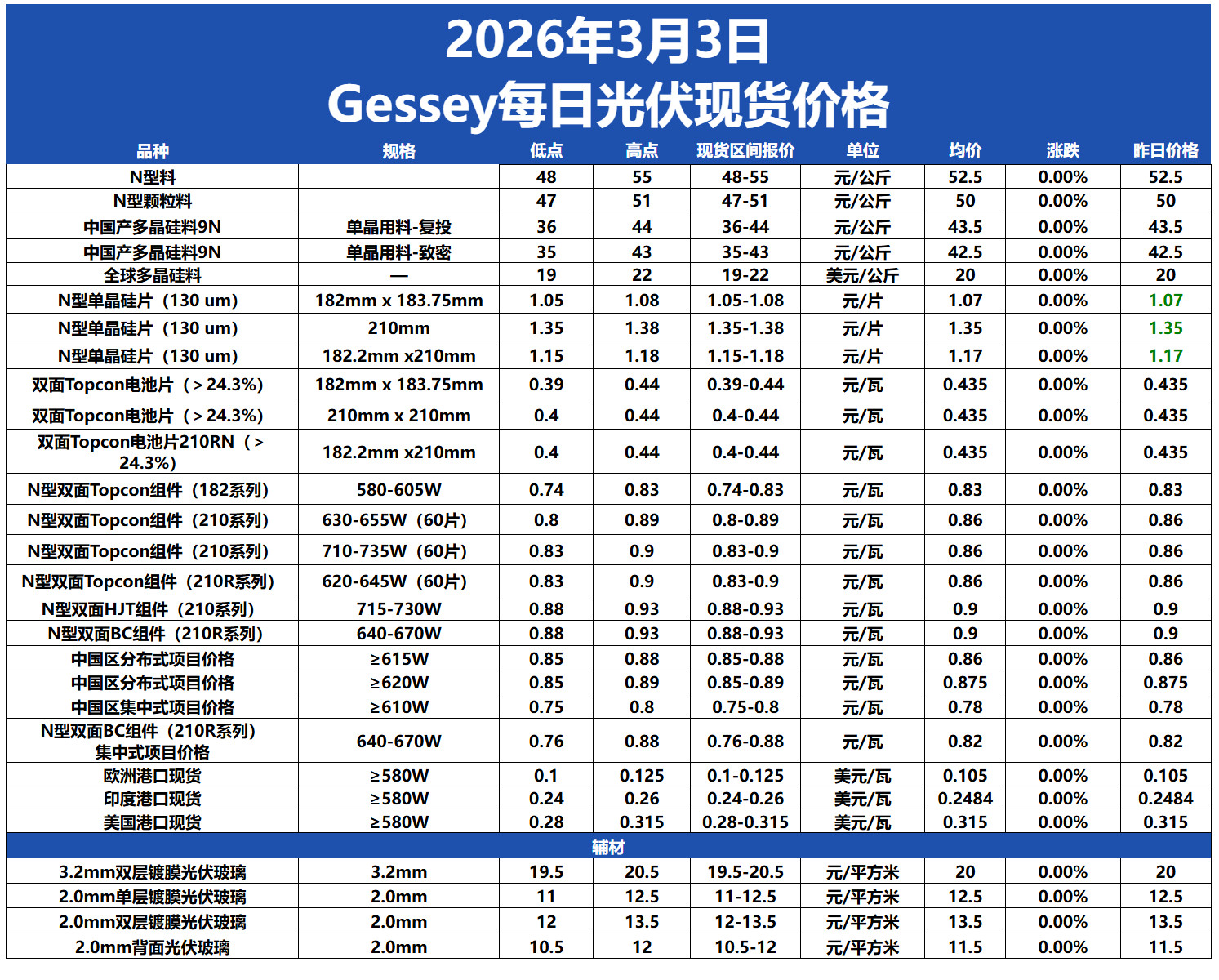 Gessey:2026年3月3日每日光伏市場(chǎng)行情2026-03-03 18:28來(lái)源:gessey瀏覽數(shù):237次