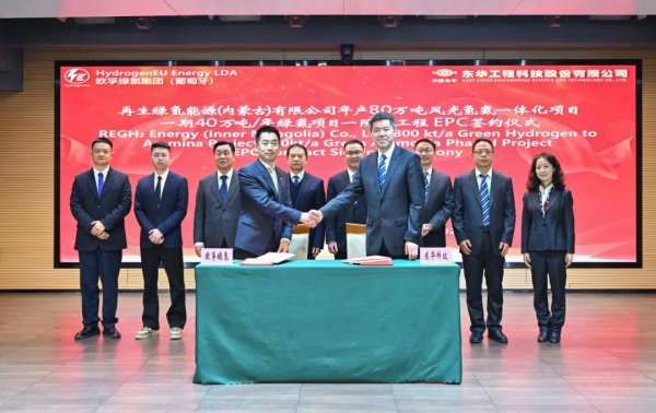 3月5日,中國化學工程東華公司牽手歐孚綠氫集團(葡萄牙),與旗下再生綠氫能源(內蒙古)有限公司共同簽署年產80萬噸風光氫氨一體化項目一期一階段工程綠氨工程EPC總承包合同。東華公司黨委副書記、總經理孟陳周,歐孚綠氫首席技術顧問丁輝、副董事長劉我翔出席儀式并見證簽約,雙方就深化綠色能源領域合作進行深入交流。
