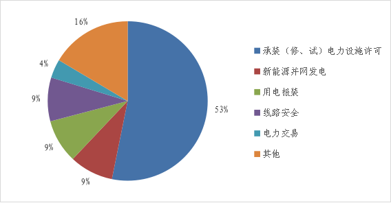 (二)申訴處理情況 2026年2月,國家能源局派出機(jī)構(gòu)受理職責(zé)范圍內(nèi)申訴事項(xiàng)84件,辦結(jié)申訴207件(含往期結(jié)轉(zhuǎn)),申訴事項(xiàng)主要集中在用電報(bào)裝、線路安全、新能源并網(wǎng)發(fā)電等方面。 (三)申訴熱點(diǎn)問題 一是部分供電企業(yè)用電報(bào)裝業(yè)務(wù)不規(guī)范。河北邢臺(tái)等地供電企業(yè)對符合“三零”服務(wù)條件的充電樁報(bào)裝業(yè)務(wù),擅自增加報(bào)裝前置條件。山西呂梁等地供電企業(yè)在未進(jìn)行核查與變更審批的情況下,違規(guī)將工商業(yè)用電變更為農(nóng)業(yè)生產(chǎn)用電。 二是部分供電企業(yè)分布式光伏接網(wǎng)服務(wù)不到位。江西南昌等地供電企業(yè)在辦理用戶分布式光伏接網(wǎng)時(shí),未嚴(yán)格落實(shí)一次性告知制度;吉林長春等地供電企業(yè)光伏接網(wǎng)流程時(shí)序倒置,部分工單發(fā)起時(shí)間晚于接入方案制定時(shí)間。 三、舉報(bào)情況 (一)舉報(bào)接收情況 2026年2月,熱線平臺(tái)接收舉報(bào)問題線索79件。其中,承裝(修、試)電力設(shè)施許可42件、新能源并網(wǎng)發(fā)電7件、用電報(bào)裝7件、線路安全7件、電力交易3件、其他13件(詳見圖3)。舉報(bào)數(shù)量較多的省份為:廣東11件、浙江6件、河北5件、陜西5件、湖南4件。