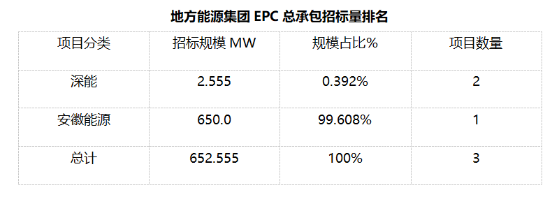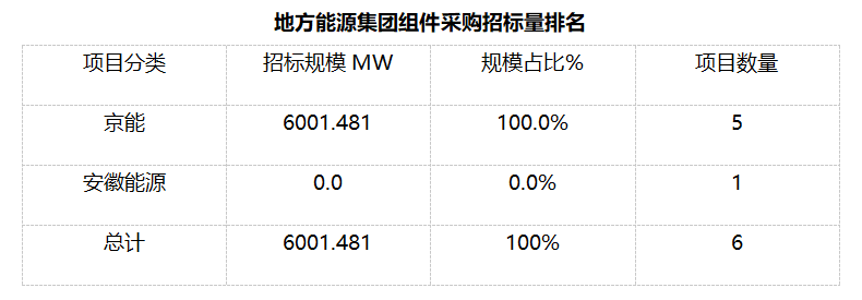 我們統(tǒng)計(jì)包含大型央企國企、地方能源集團(tuán)、地方政府機(jī)關(guān)、兩大電網(wǎng)、央企總包企業(yè)、知名光伏企業(yè)等,其中地方能源集團(tuán)占總招標(biāo)規(guī)模較高,具體各企業(yè)排名如下表: