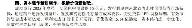【核心數(shù)據(jù)提煉】3月25日新天綠能發(fā)布2025年報,營收198.31億元降7.21%、凈利18.26億元增9.21%。風(fēng)光板塊營收62.28億元增3.04%,公司完成多省光伏項目剝離,宣布不再新增光伏投資,聚焦風(fēng)電與天然氣核心業(yè)務(wù)。 3月25日,新天綠能披露年報,2025年集團(tuán)實現(xiàn)營業(yè)收入198.31億元,同比下降7.21%;歸母凈利潤18.26億元,同比增長9.21%。其中,風(fēng)力/光伏板塊業(yè)務(wù)的營業(yè)收入為人民幣62.28億元,同比增加3.04%,風(fēng)力/光伏板塊業(yè)務(wù)的營業(yè)收入占本集團(tuán)營業(yè)收入的31.40%。收入增加的主要原因為本集團(tuán)風(fēng)電場可利用小時數(shù)較上年同期上升。 在資本運作方面,集團(tuán)成功發(fā)行2025年度第一期綠色中期票據(jù)15億元,發(fā)行利率創(chuàng)河北省內(nèi)永續(xù)信用債券市場新低,通過精準(zhǔn)選擇發(fā)債窗口、置換和提前償還存量高成本貸款、變更貸款LPR調(diào)整周期,有效節(jié)約資金成本超億元。順利完成H股非公開發(fā)行,募集資金15.14億港元,資本結(jié)構(gòu)進(jìn)一步優(yōu)化。高效推進(jìn)光伏項目剝離,有效降低經(jīng)營風(fēng)險。