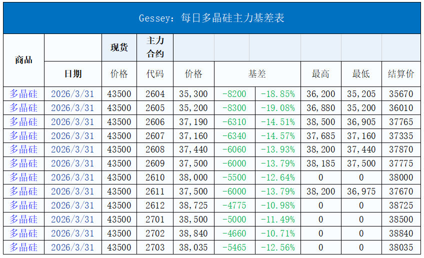 現(xiàn)貨市場價格變動: 多晶硅: 今日硅料價格整體維穩(wěn),N型料主流價格在40-43.5元/公斤,均價43.5元/公斤。N型顆粒硅主流價格在40-42.5元/公斤,均價42.5元/公斤。國產(chǎn)復(fù)投特級硅料主流價格在40-42.5元/公斤,均價42.5元/公斤,國產(chǎn)致密特級硅料主流價格在39-40元/公斤,均價39.9元/公斤。全球多晶硅料主流價格在19-22元/公斤,均價20元/公斤。 硅片: 今日硅片價格整體維穩(wěn),N型-183.75mm單晶硅片主流現(xiàn)貨價格維持0.98-1元/片,均價0.98元/片。N型-210mm單晶硅片主流現(xiàn)貨價格維持1.28-1.3元/片,均價1.3元/片。N型-210Rmm單晶硅片主流現(xiàn)貨價格1.05-1.1元/片,均價1.1元/片。 電池片: 今日電池片價格整體維穩(wěn),24.3%以上183.75mm雙面Topcon電池片主流價格在0.375-0.4元/瓦,均價0.38元/瓦。24.3%以上210mm雙面Topcon電池片主流價格在0.38-0.4元/瓦,均價0.39元/瓦。24.3%以上210Rmm雙面Topcon電池片主流價格在0.38-0.4元/瓦,均價0.39元/瓦。 組件: 今日組件價格整體維穩(wěn),N型雙面Topcon 組件(182系列)價格在0.74-0.82元/ 瓦,均價為0.81元/瓦。N型雙面Topcon 組件(210系列)價格在0.78-0.85元/ 瓦,均價為0.82元/瓦。N型雙面Topcon組件(210系列)(700-725W(60片)價格在0.78-0.85元/ 瓦,均價為0.82元/瓦。N型雙面Topcon組件(210R系列)(610-635W(60片))價格在0.81-0.86元/ 瓦,均價為0.83元/瓦。N型雙面HJT組件(210系列)價格在0.84-0.88元/ 瓦,均價為0.88元/瓦。N型雙面BC組件(210R系列)價格在0.88-0.92元/ 瓦,均價為0.88元/瓦。中國區(qū)分布式項目(≥595W)價格在0.785-0.82元/瓦,均價為0.79元/瓦,中國區(qū)分布式項目(≥615W)價格在0.785-0.85元/瓦,均價為0.805元/瓦,中國區(qū)集中式項目(≥585W)價格在0.75-0.8元/ 瓦,均價為0.78元/瓦。N型雙面BC組件(210R系列)集中式項目價格在0.76-0.88元/ 瓦,均價為0.82元/瓦。歐洲港口現(xiàn)貨價格在0.1-0.125美元/ 瓦,均價為0.105美元/瓦。印度港口現(xiàn)貨價格在0.24-0.26美元/ 瓦,均價為0.2484美元/瓦。美國港口現(xiàn)貨價格在0.28-0.315美元/ 瓦,均價為0.315美元/瓦。 玻璃: 今日玻璃價格整體維穩(wěn),3.2mm雙層鍍膜光伏玻璃價格在18-19.5元/平方米,均價為19.5元/平方米。2.0mm單層鍍膜光伏玻璃價格在10.5-12元/平方米,均價為11.5元/平方米。2.0mm雙層鍍膜光伏玻璃價格在11-12.8元/平方米,均價為12.8元/平方米。2.0mm背面光伏玻璃價格在9-10.5元/平方米,均價為10.5元/平方米。 期貨市場
