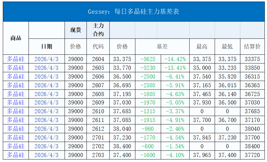 Gessey:2026年4月3日每日光伏市場行情2026-04-03 17:14來源:gessey蓋錫咨詢瀏覽數(shù):245次
